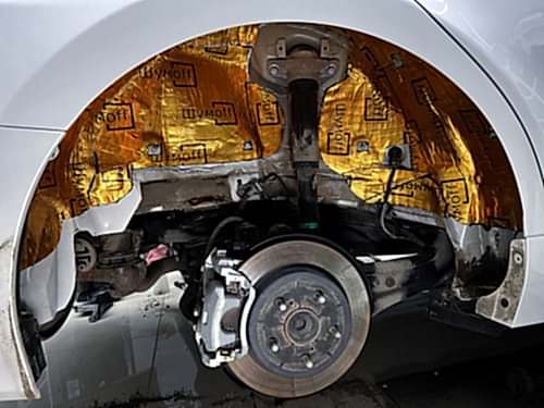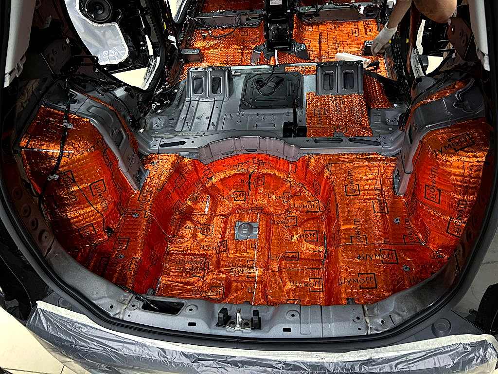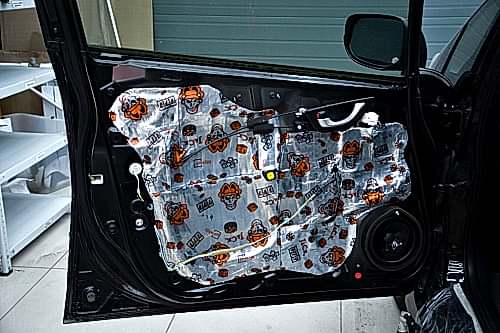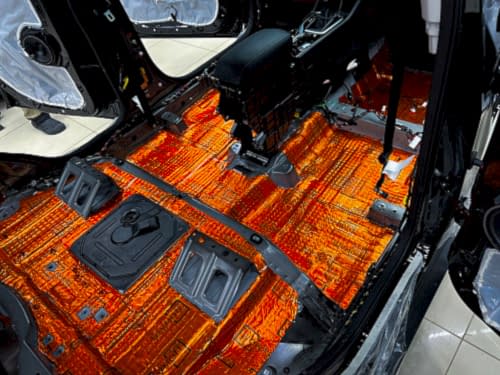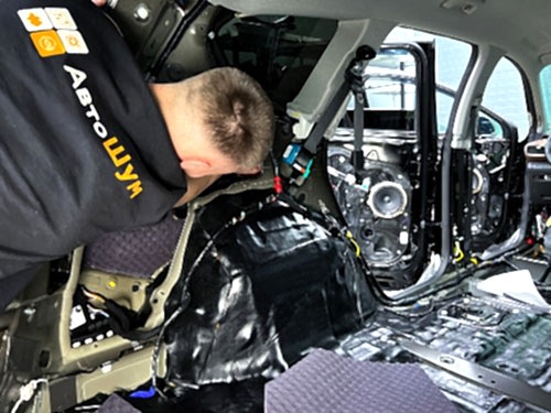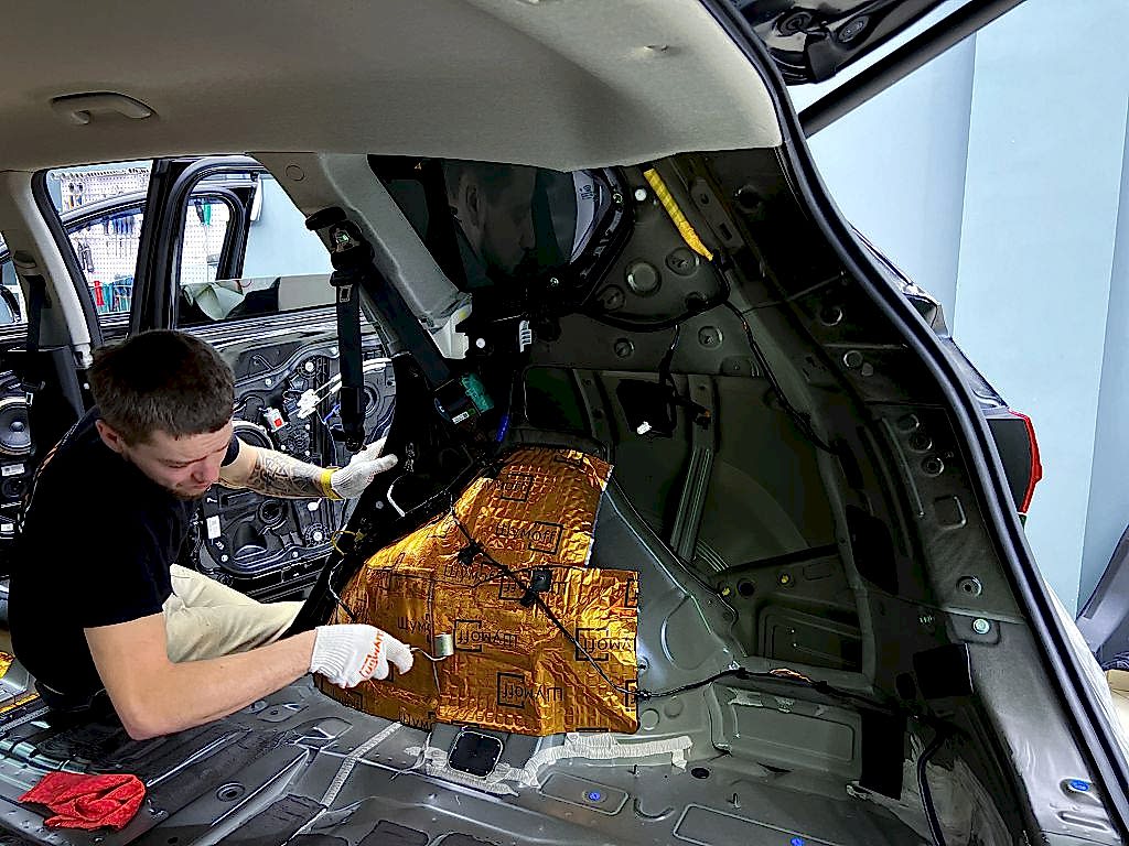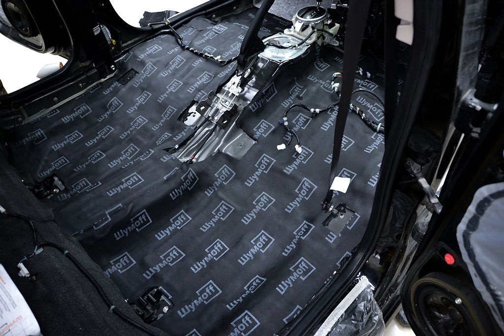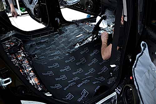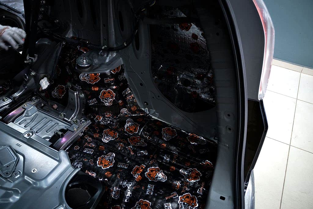 Дно багажника и крылья оклеиваются шумо и Pin-Up Шумофф П4 4. Арки оклеиваются шумопоглотителем Flex A15.