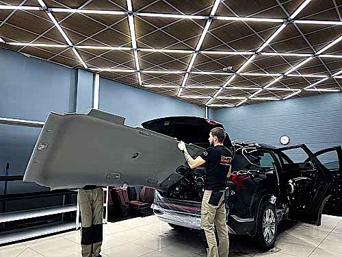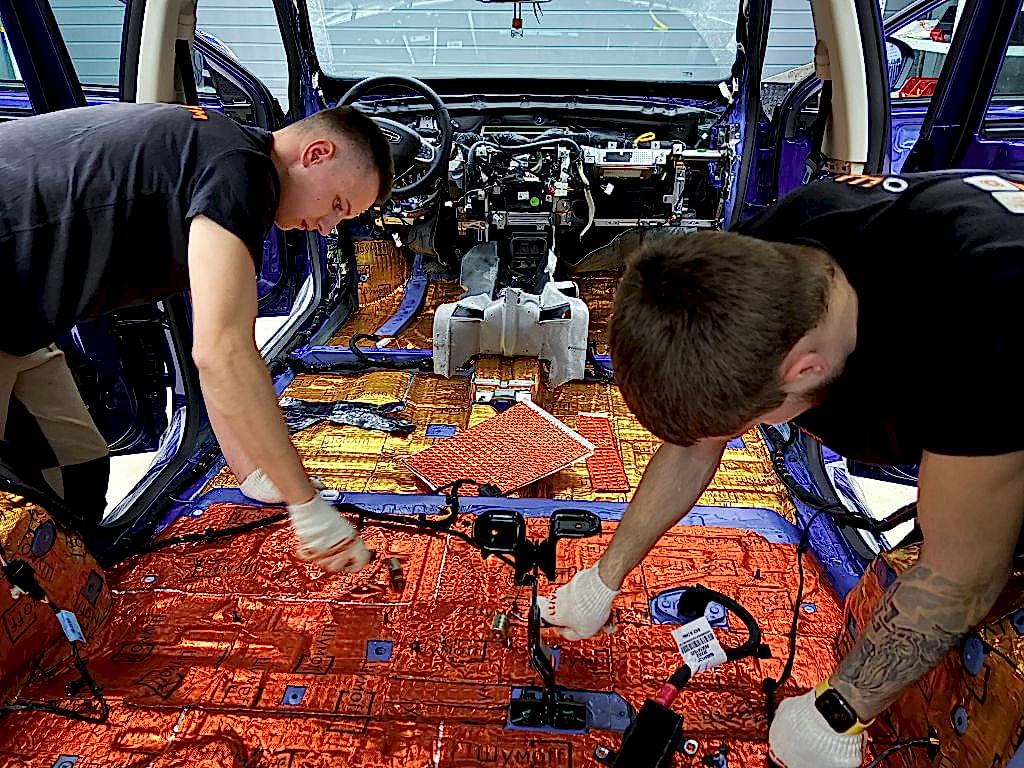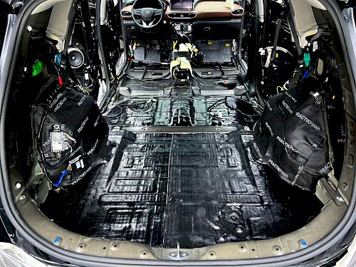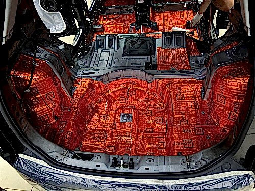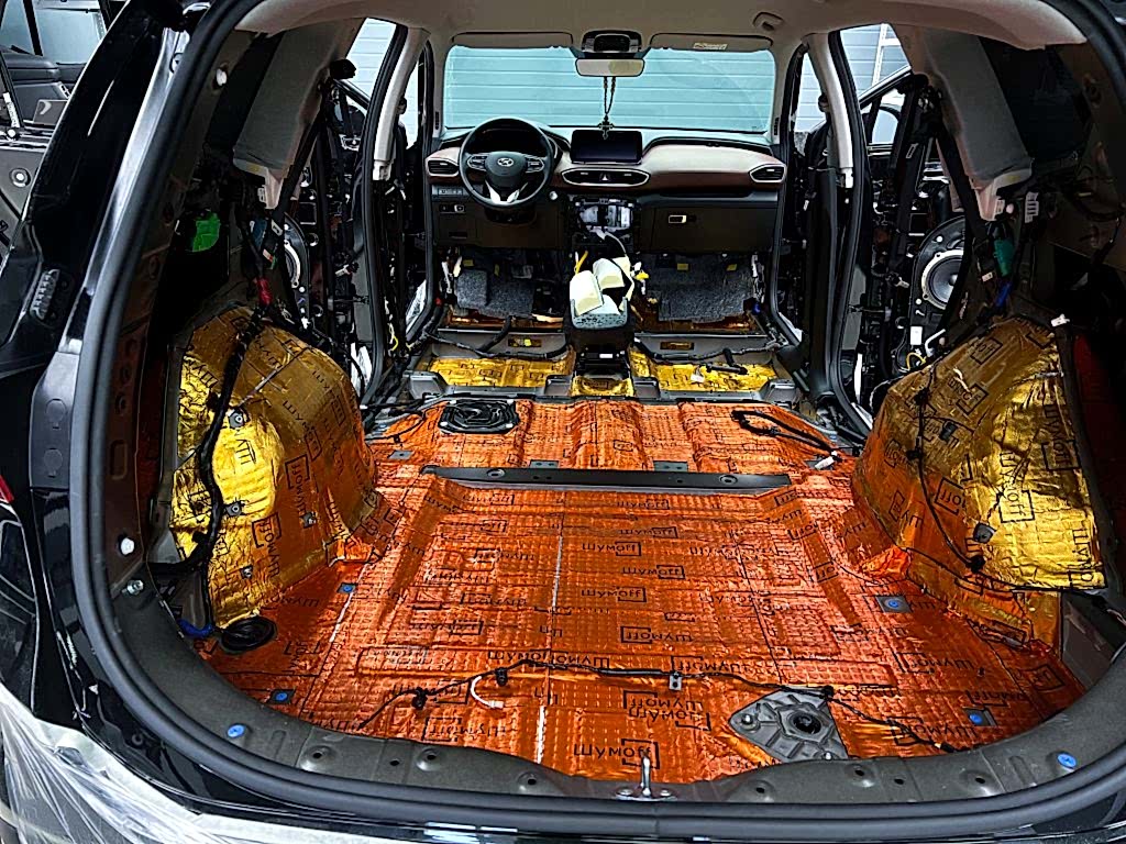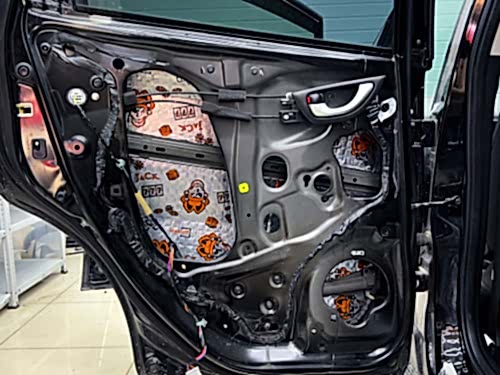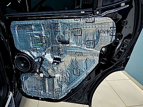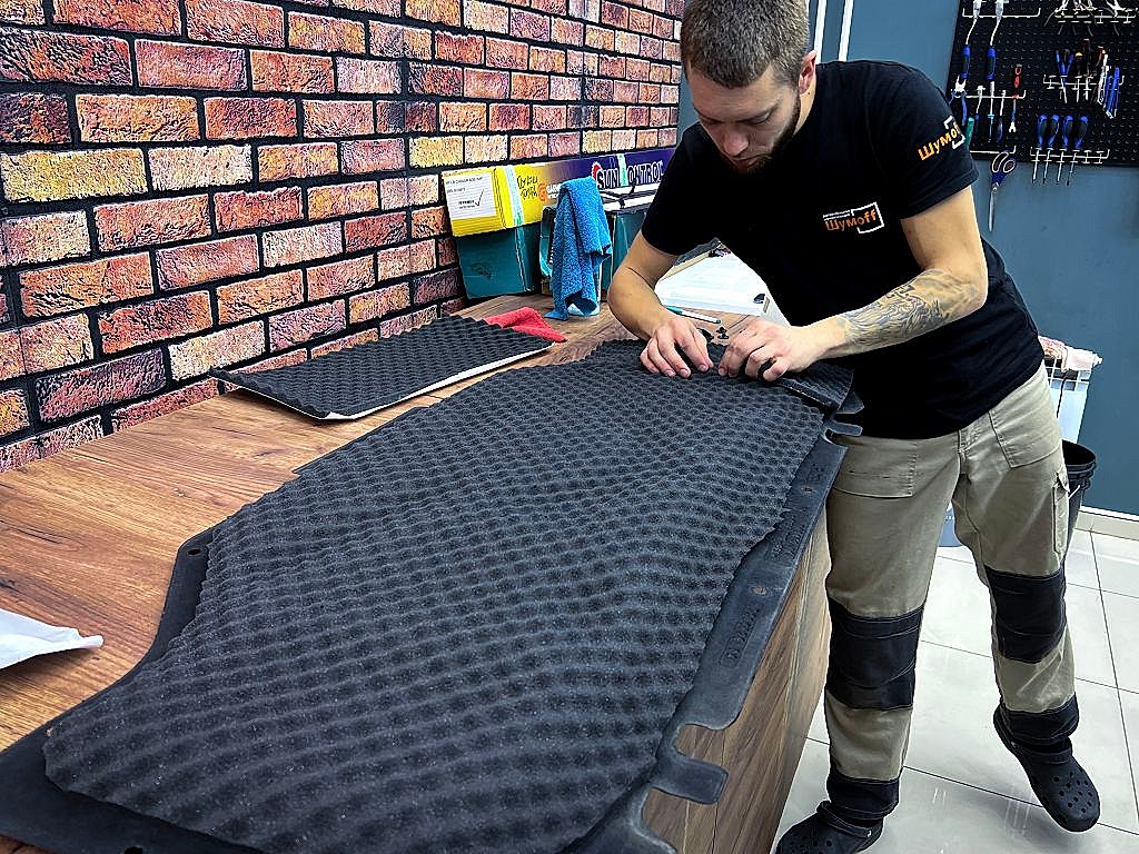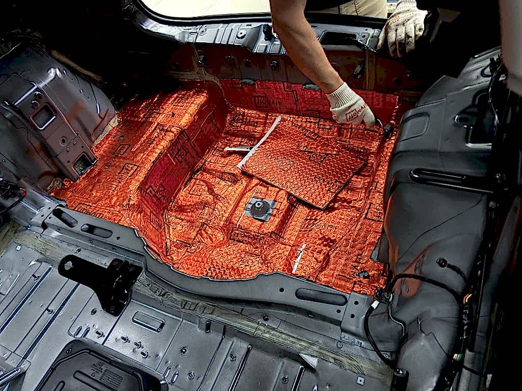 Дно багажника и крылья оклеиваются шумо и Pin-Up Шумофф П4 4. Арки оклеиваются шумопоглотителем Flex A15.