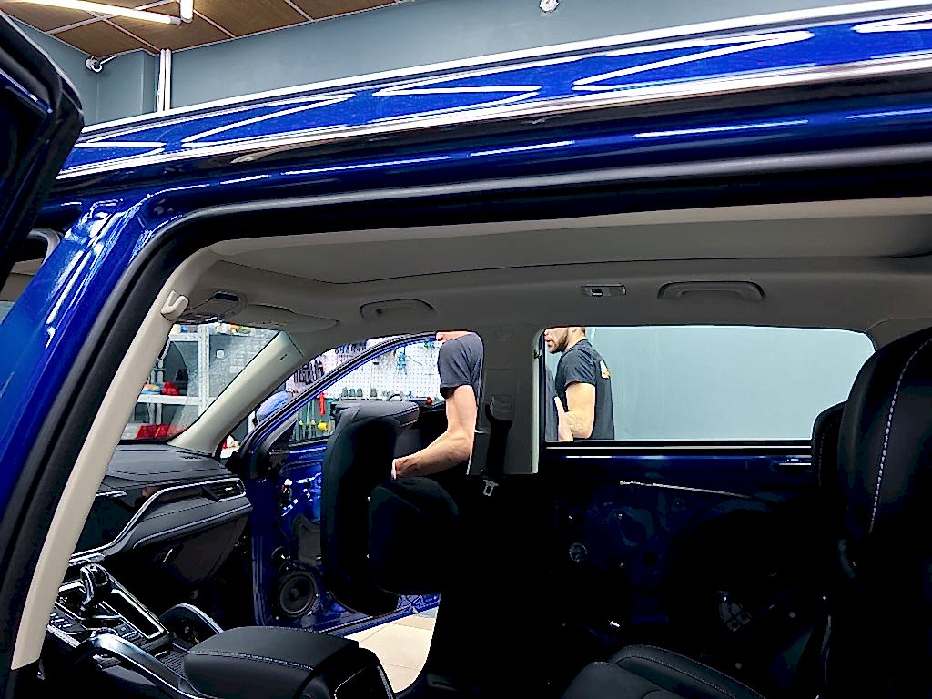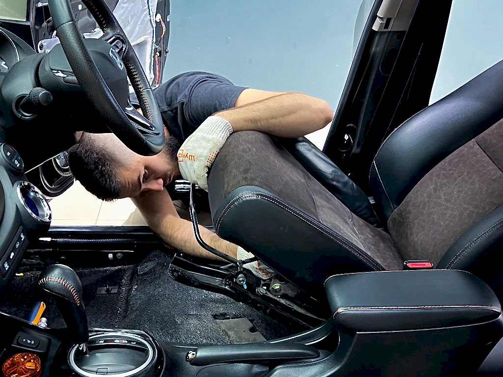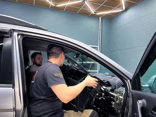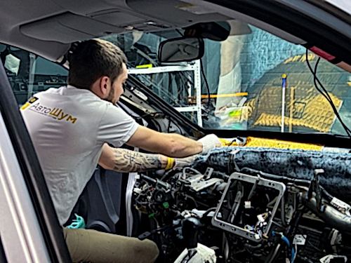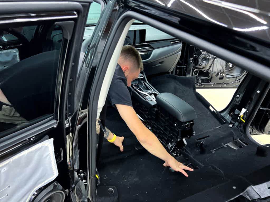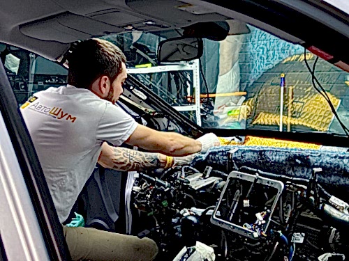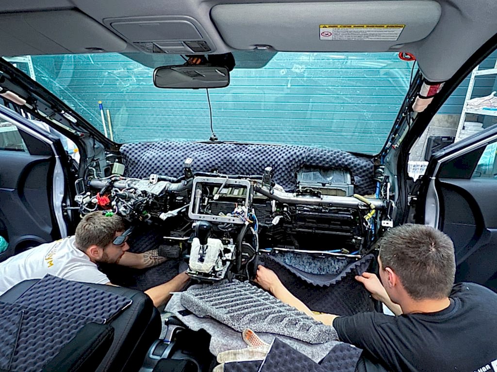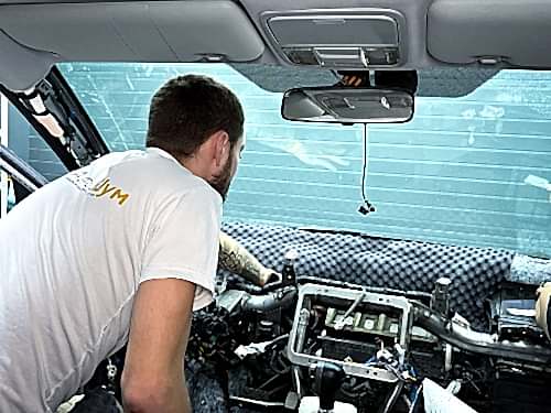 Приступаем к разбору панели и центральной консоли, аккуратно демонтируем Pin-Up молдинги, декоративные вставки. Далее переходим к электронике, отключаем провода от магнитолы, климат контроля и различных кнопок, никакого вмешательства влияющего на гарантию не происходит, мы лишь штатно отключаем и подключаем разъемы.