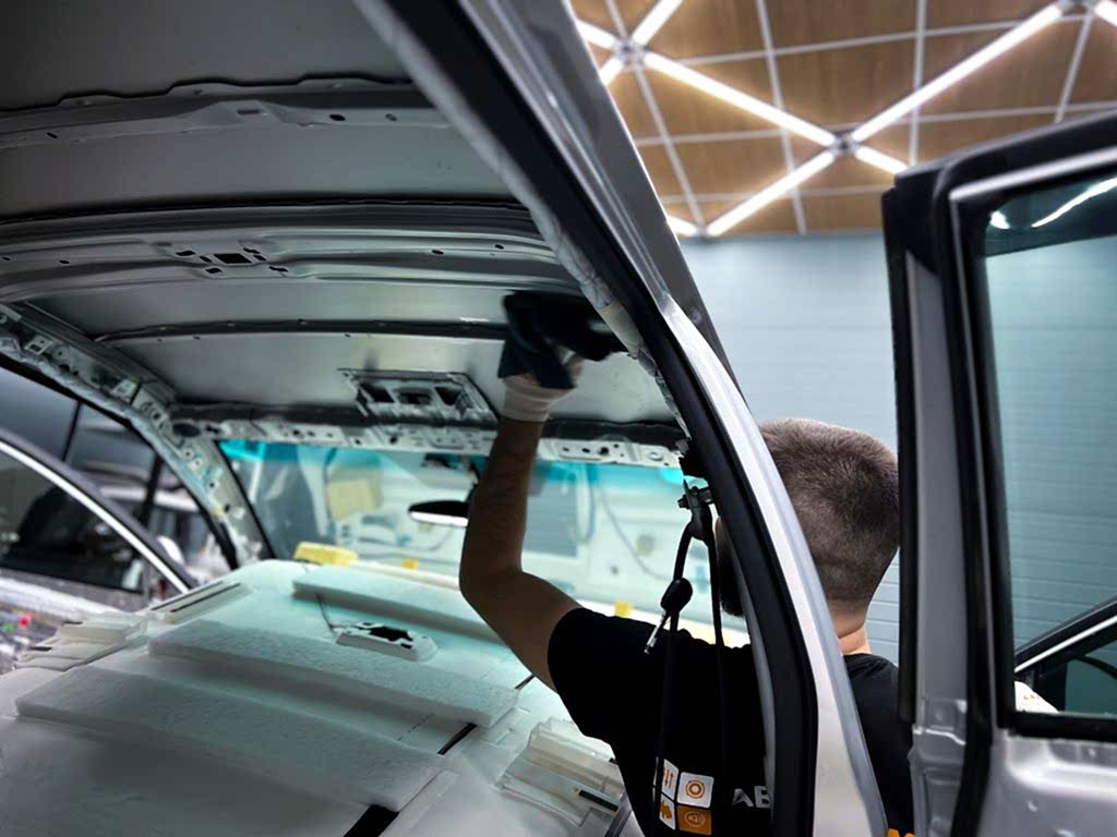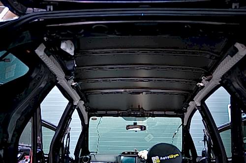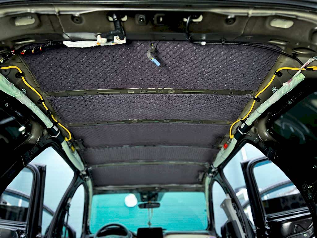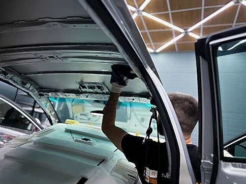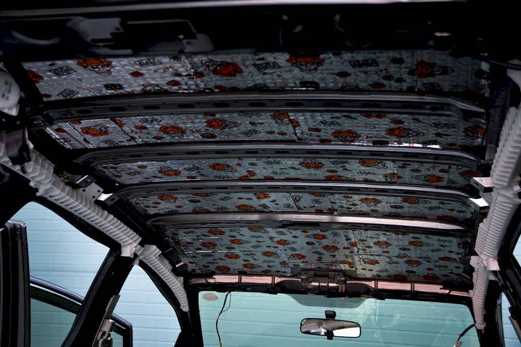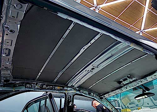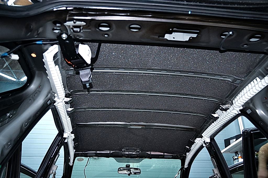 Штатная шумоизоляция крыши полностью отсутствует. Обезжириваем поверхность для начала Pin-Up виброизоляции.
