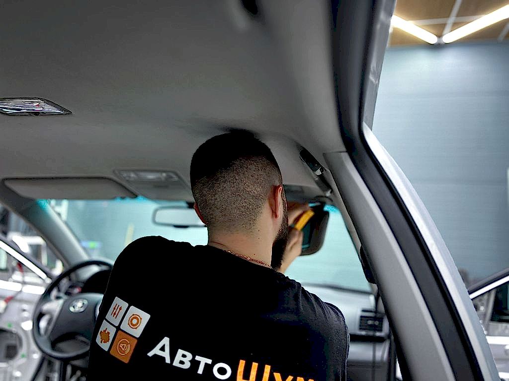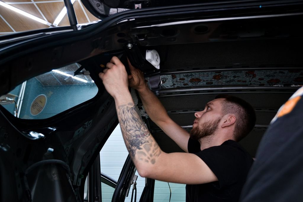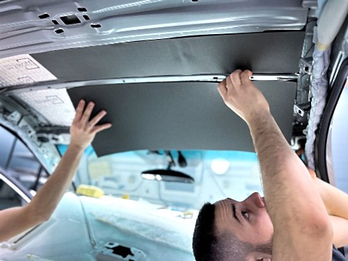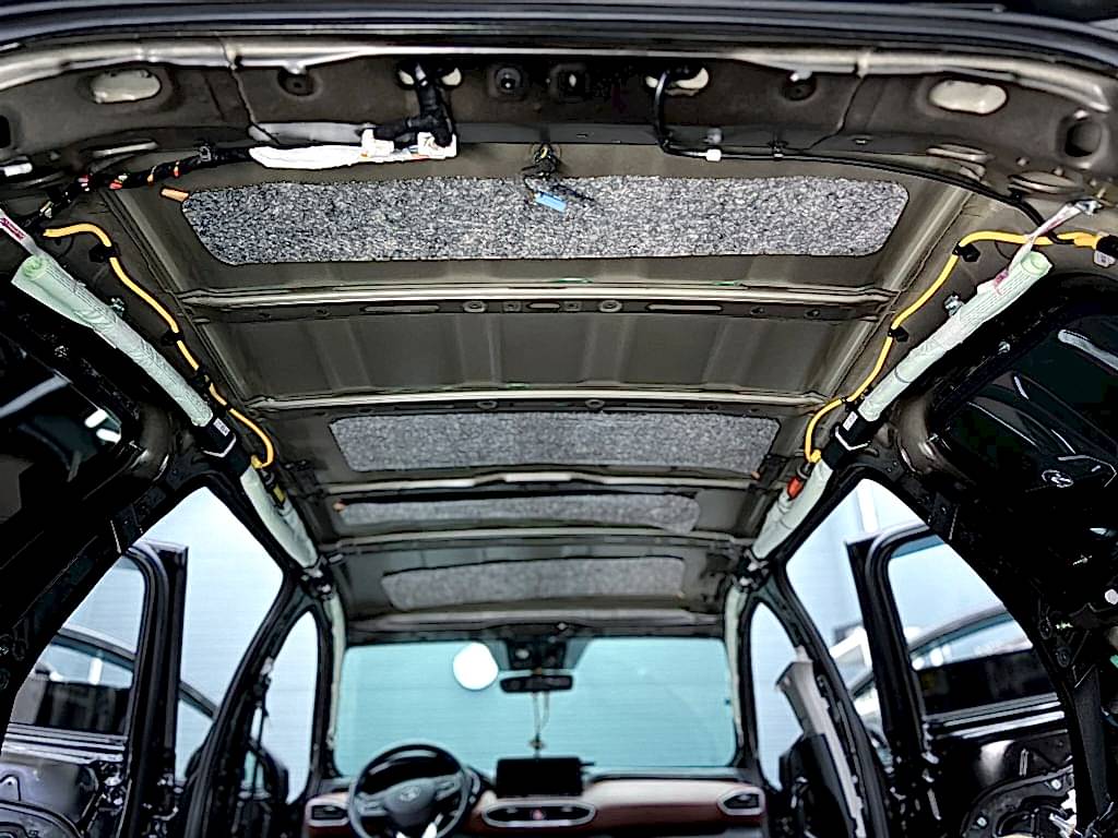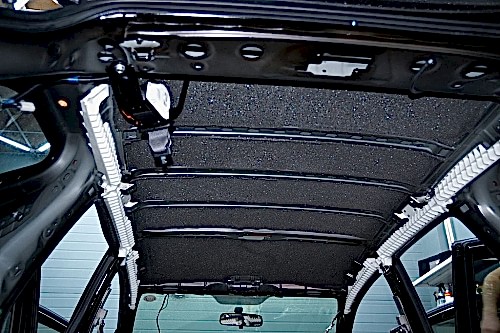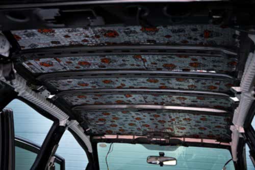 Штатная шумоизоляция крыши полностью отсутствует. Обезжириваем поверхность для начала Pin-Up виброизоляции.