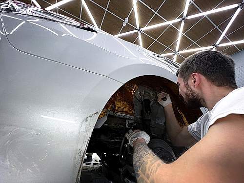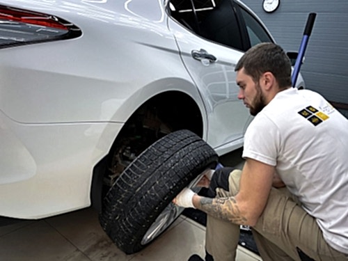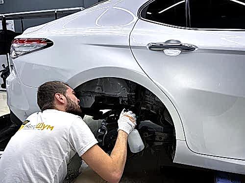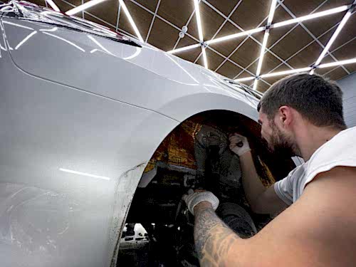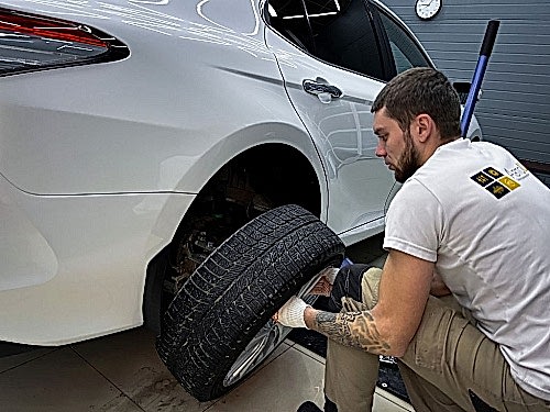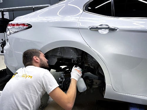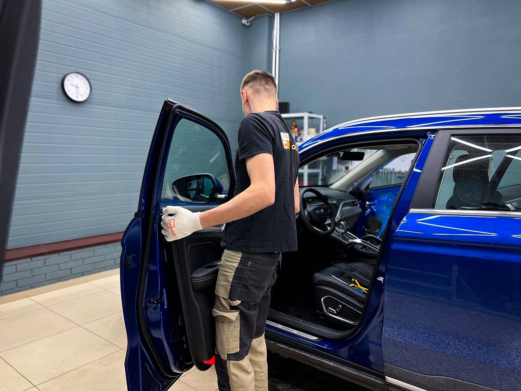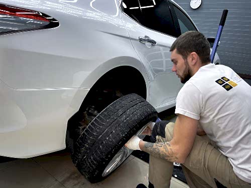 Тщательно зачищаем и обезжириваем область оклейки у арок. На все материалы мы предоставляем бессрочную гарантию, проблема того, что какой то материал под аркой отклеится полностью закрыта