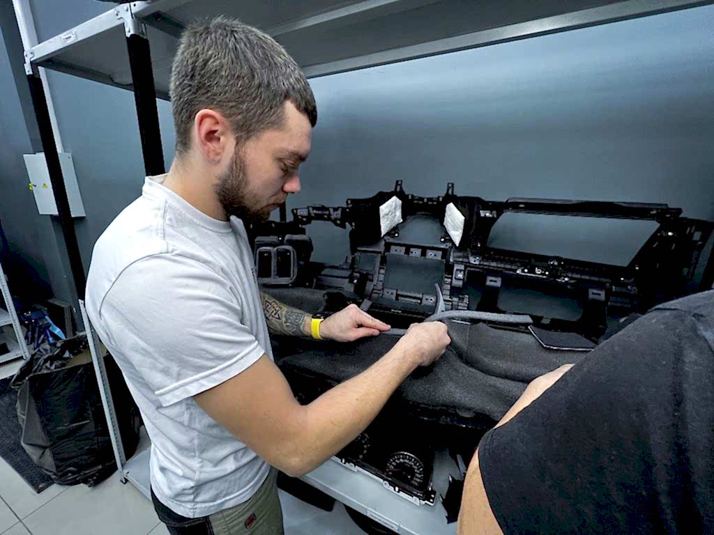 Откручиваем и вынимаем Pin-Up пластик и центральную консоль. Все детали салона складываем на специальный стеллаж, что бы сохранить их в первозданном виде.