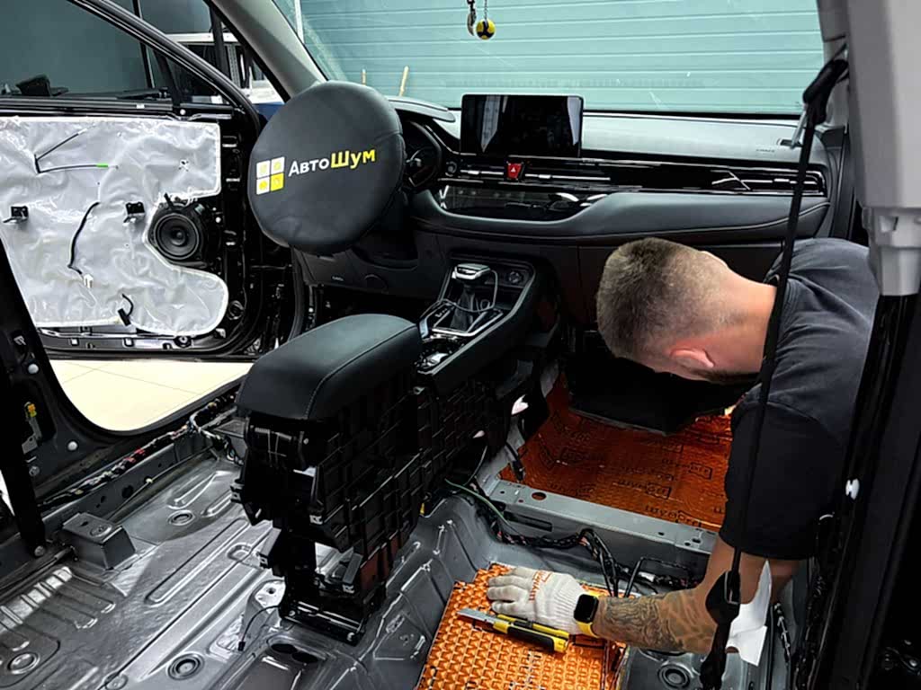 От Pin-Up перегородки и до заднего сиденья вмести с ним клеится мощный многослойный шумо и звукоизолятор Шумофф Prizma 6.