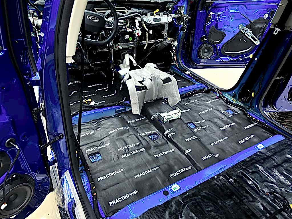 Завершаем шумоизоляцию нанесением Pin-Up слоя звукоизоляционной мембраны Practik Finish на арки. В результате получаем компоновку Pin-Up с максимальной эффективностью и Pin-Up сборки салона в первозданный вид.