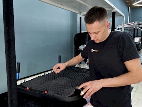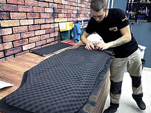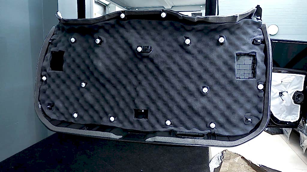 Внутренняя поверхность обивки Pin-Up шумопоглотителем Flex А15.
