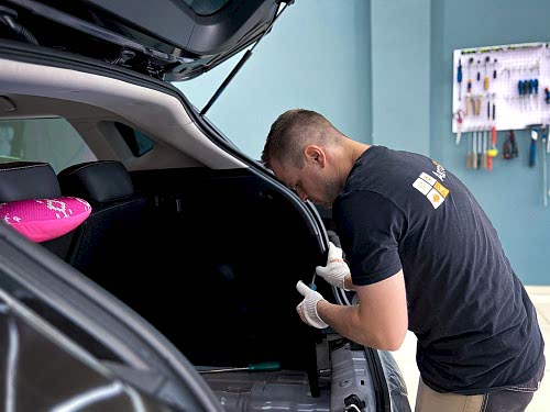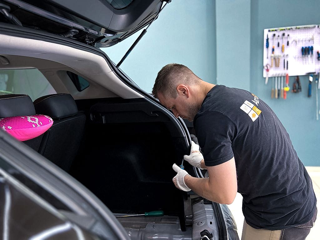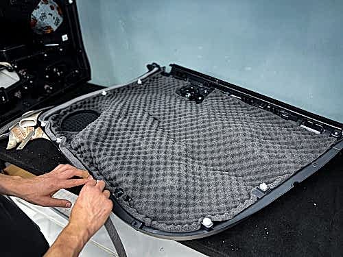 Обшивку пятой двери оклеиваем Flex А15, для устранения Pin-Up скрипов и бряков.