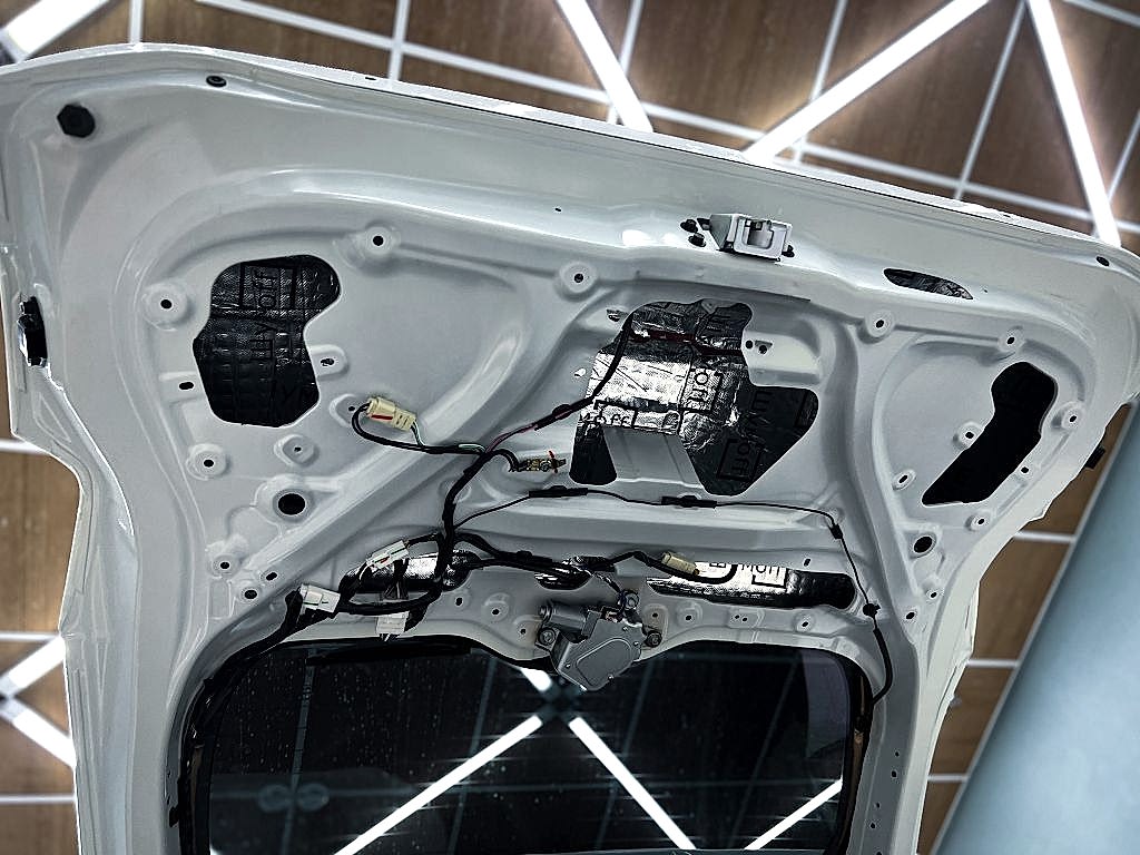 Крышку багажника оклеиваем Pin-Up Шумофф L2, это позволит свести увеличение ее веса к минимуму, дабы не возникло проблем с открыванием багажника.