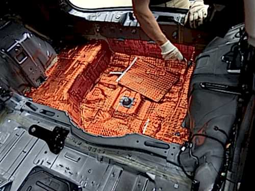 Для виброизоляции поверхности под задним сиденьем так же Pin-Up М3. Все листы берем уже заранее прогретые из специальной печки и тщательно прикатываем после монтажа.