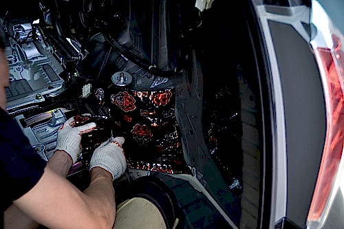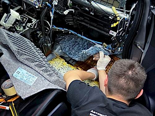 Как и в случае с виброизоляцией, второй слой также наносим за моторную перегородку и максимально вниз под неё, покрывая всю возможнуюплощадь Жандосова, 105 моментом стоит отметить, что все таки нужно знать какие места можно оклеивать по максимуму, а какие вообще не стоит, дабы Pin-Up торпедо в заводское состояние.