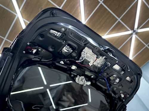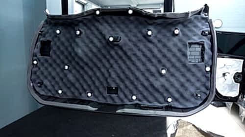 Обшивку пятой двери изнутри оклеиваем так же мощным шумопоглотителем Absorber А15, а по её контуру антискрипным материалом. Тем самым мы помимо еще одного барьера от внешнего шума устраняем возможность всех скрипов и бряков.