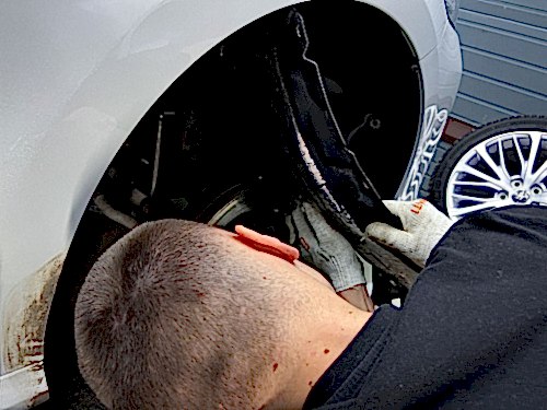 Приступаем к шумоизоляции Pin-Up автомобиля. Снимаем колеса и подкрылки