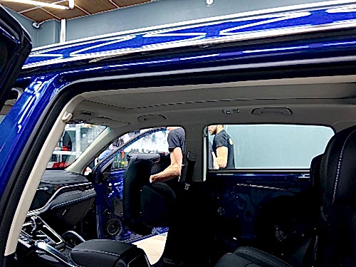 Для виброизоляции поверхности под задним сиденьем так же используем М3. Все листы берем уже заранее прогретые из специальной печки и тщательно прикатываем после монтажа.
