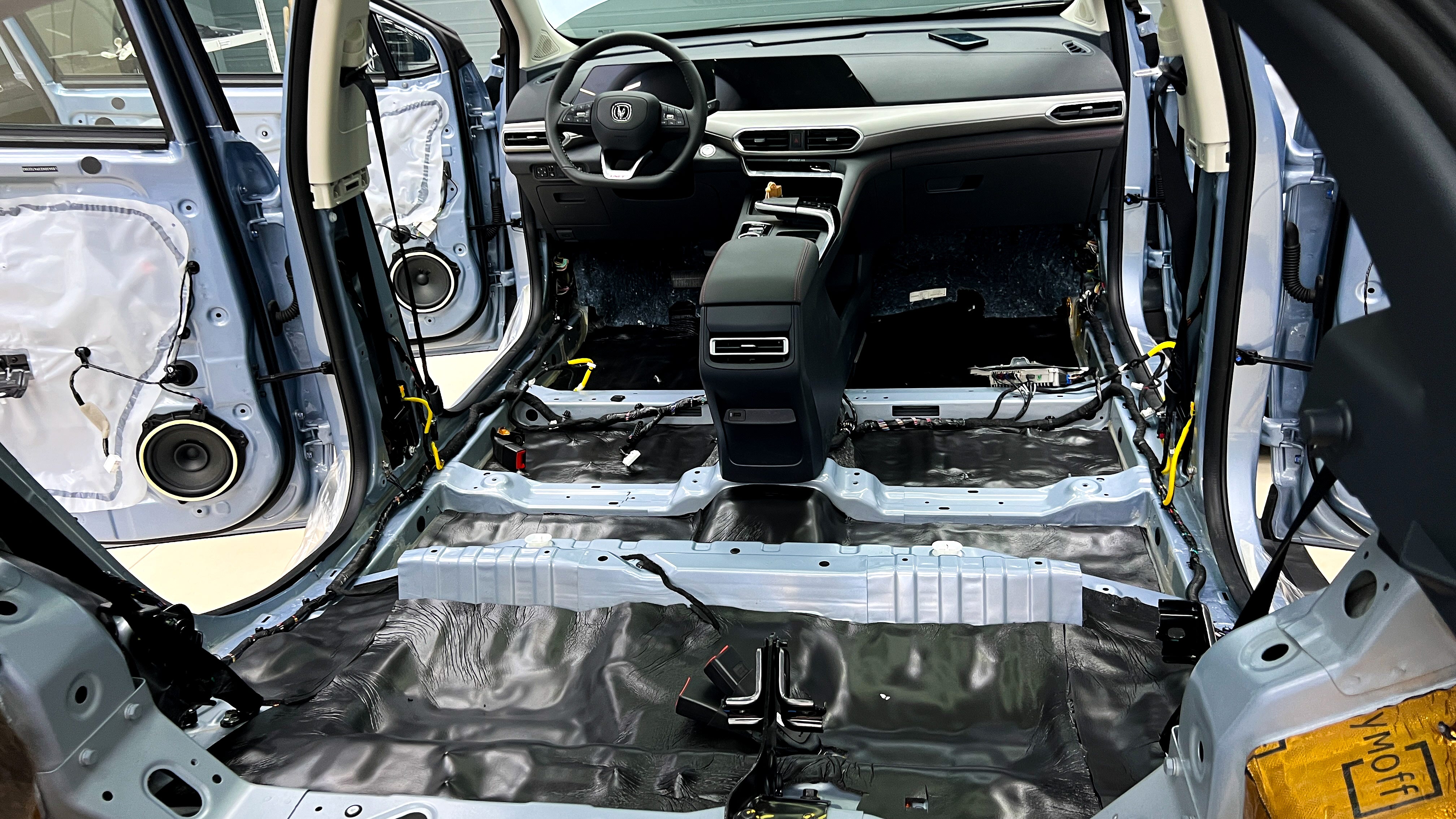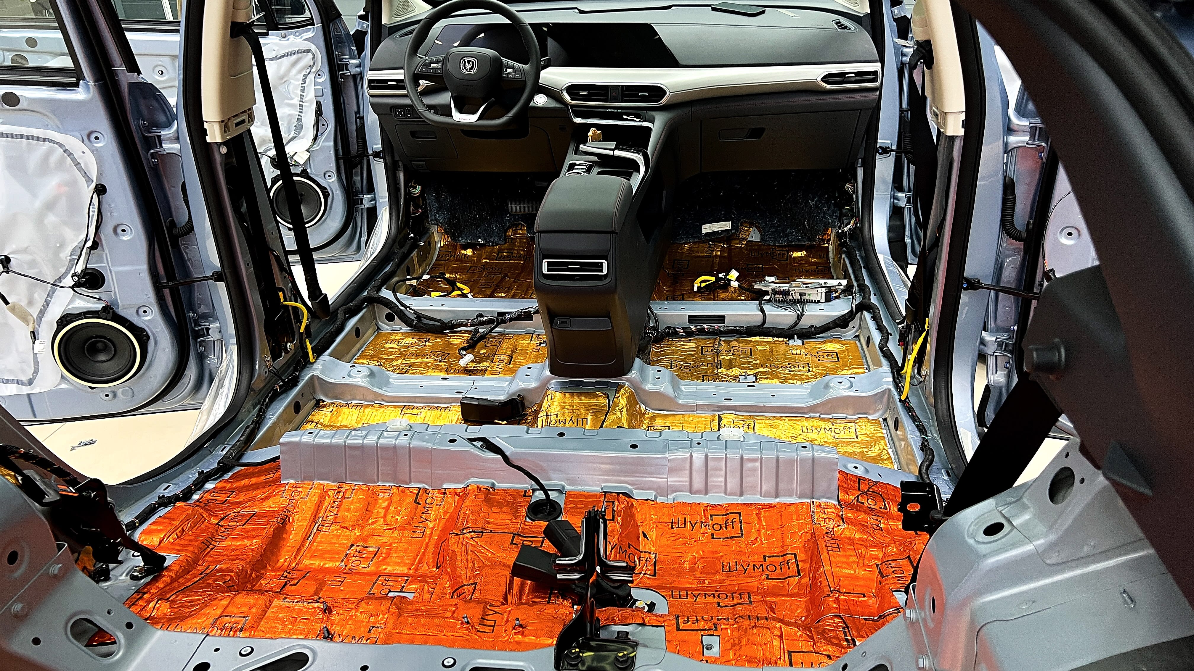 От моторной перегородки и до заднего сиденья вмести с ним клеится мощный многослойный шумо и звукоизолятор Шумофф Pin-Up 6.
