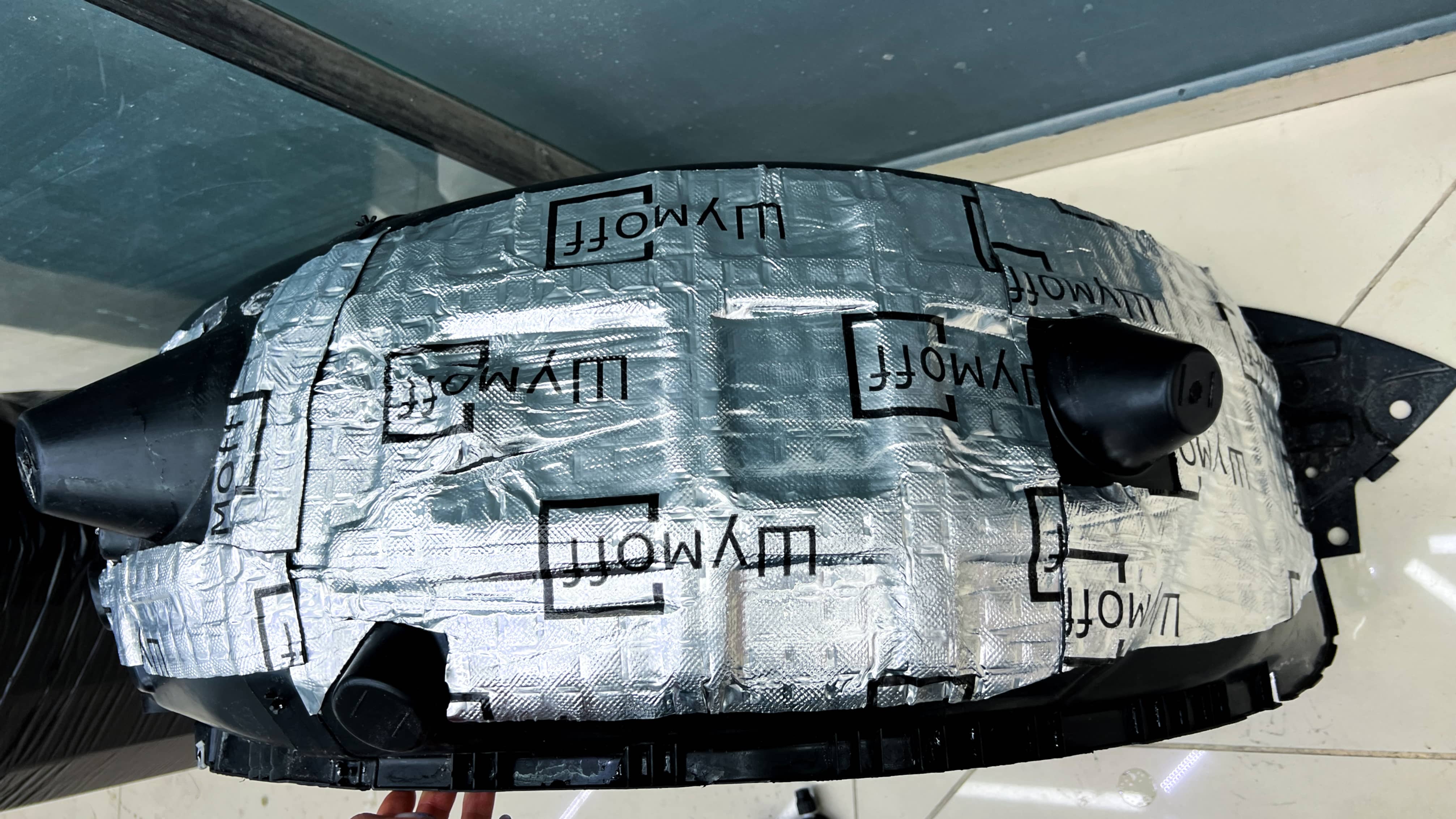 Последним этапом оклеиваем все провода Pin-Up материалом и завершаем шумоизоляцию панели её обратной сборкой