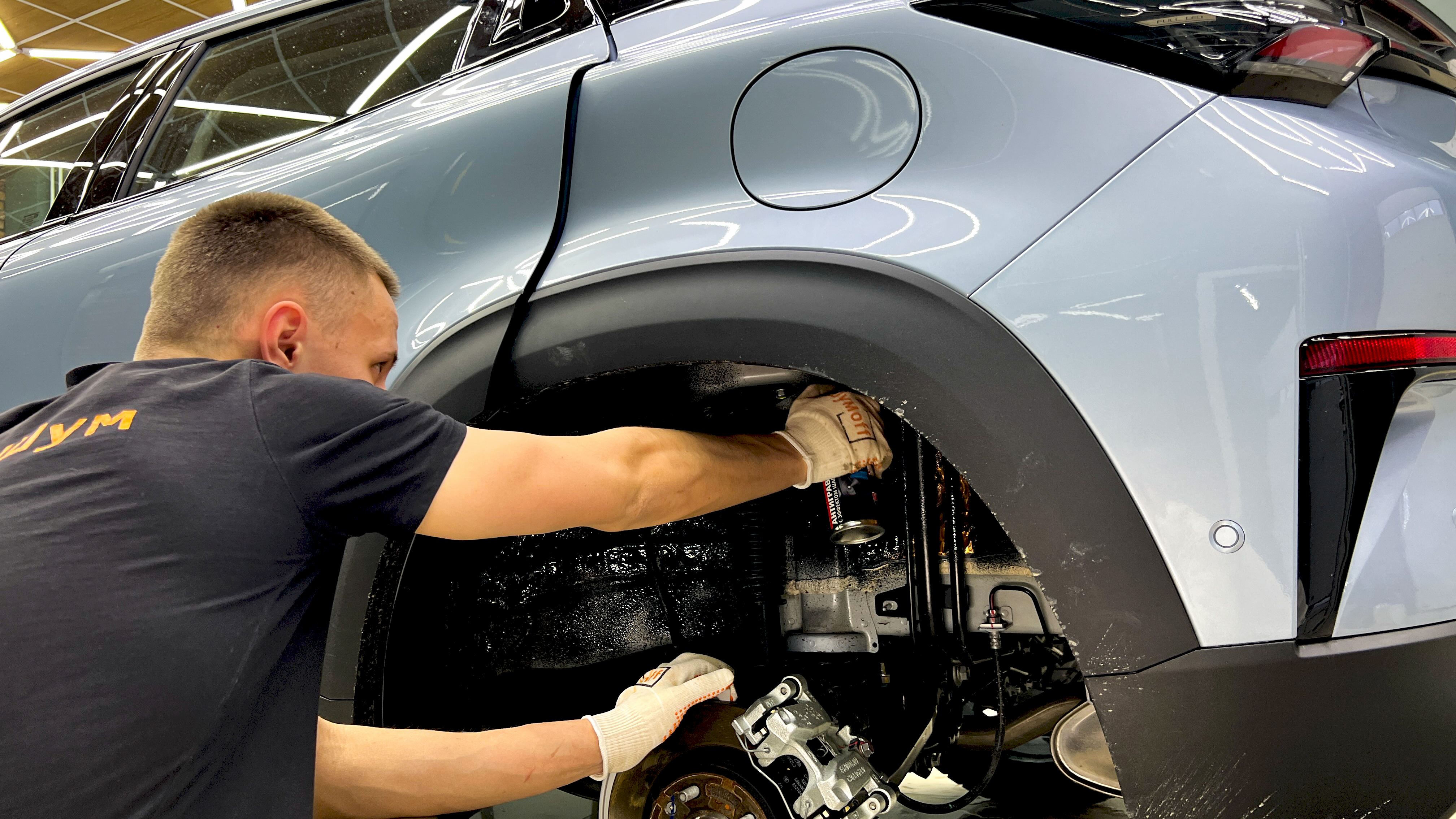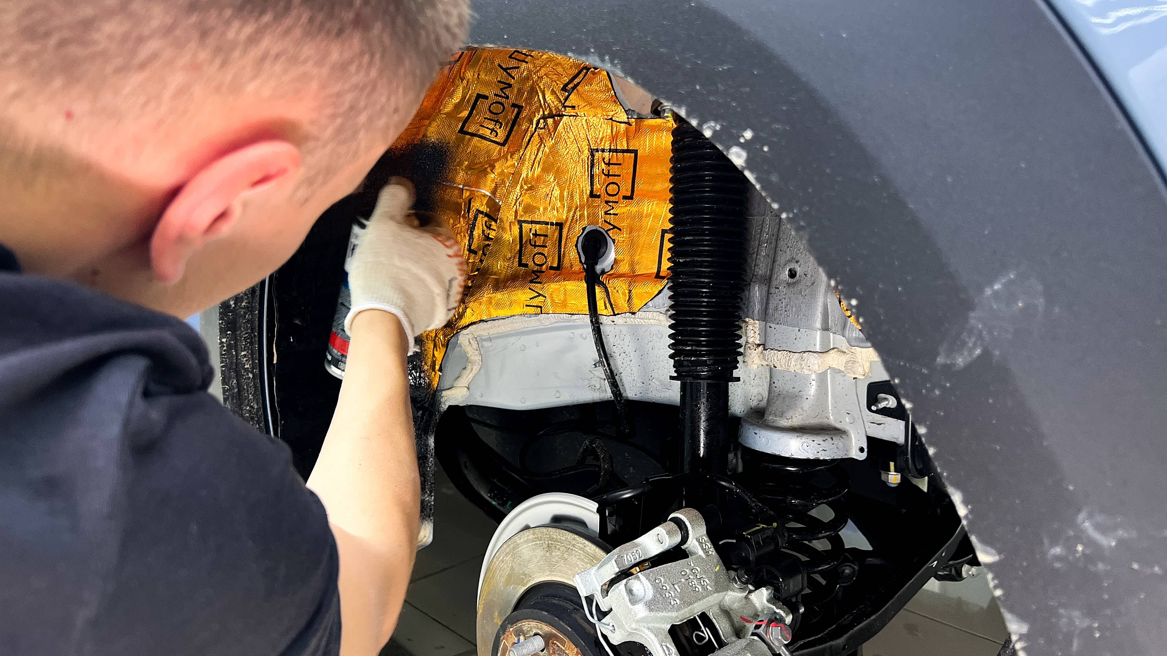 Третьим слоем на подкрылки монтируем Pin-Up Шумофф М2.