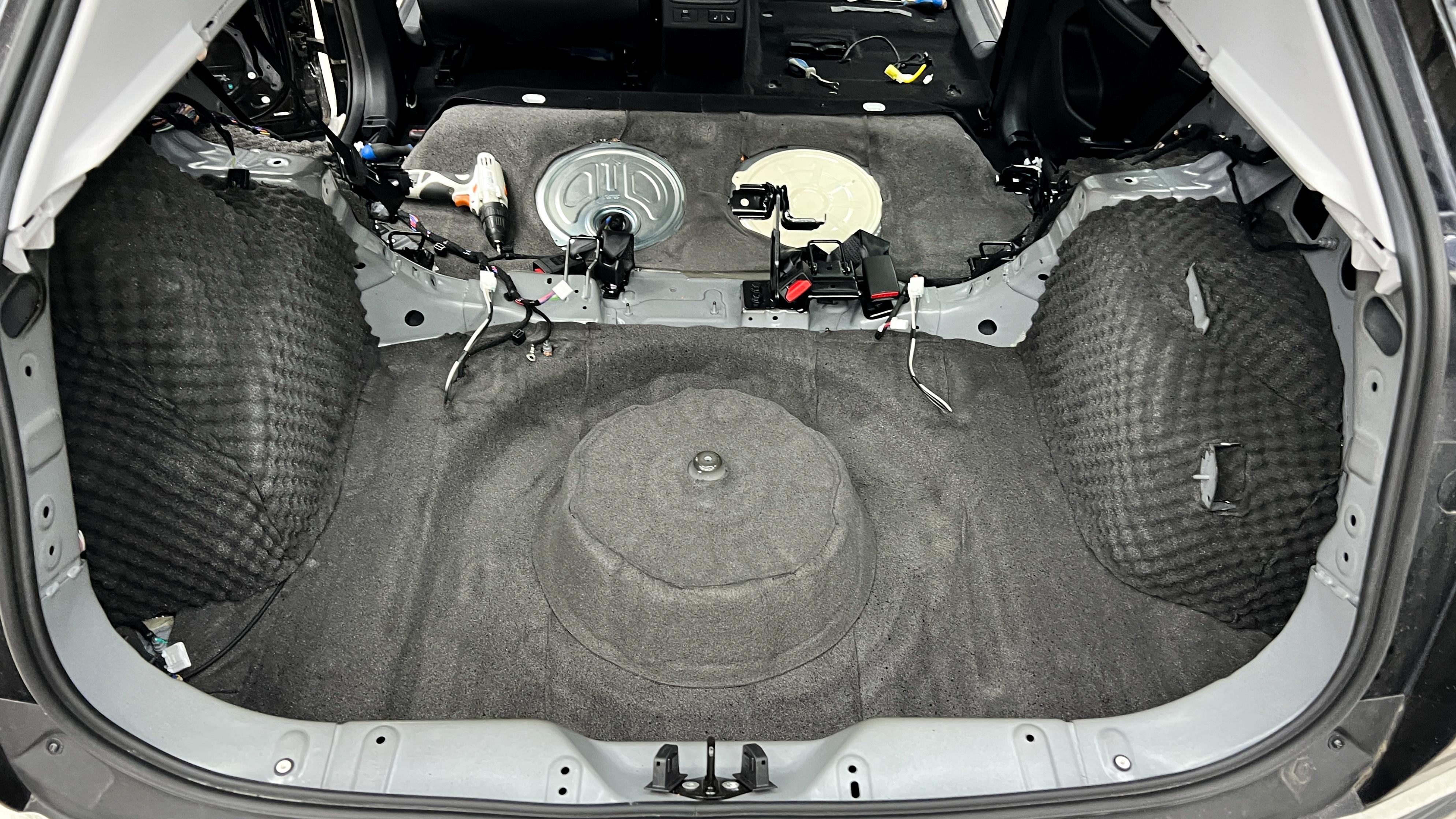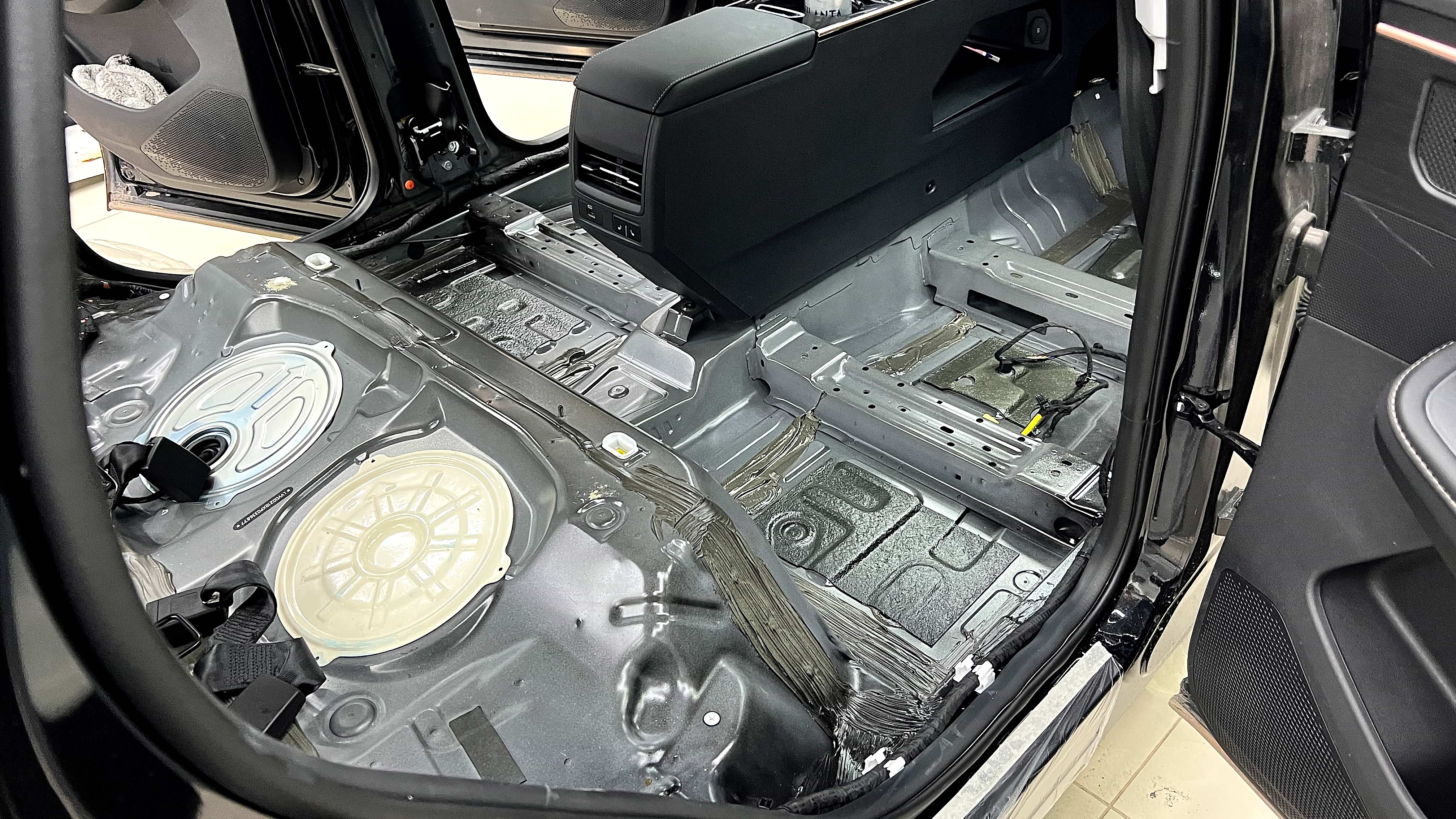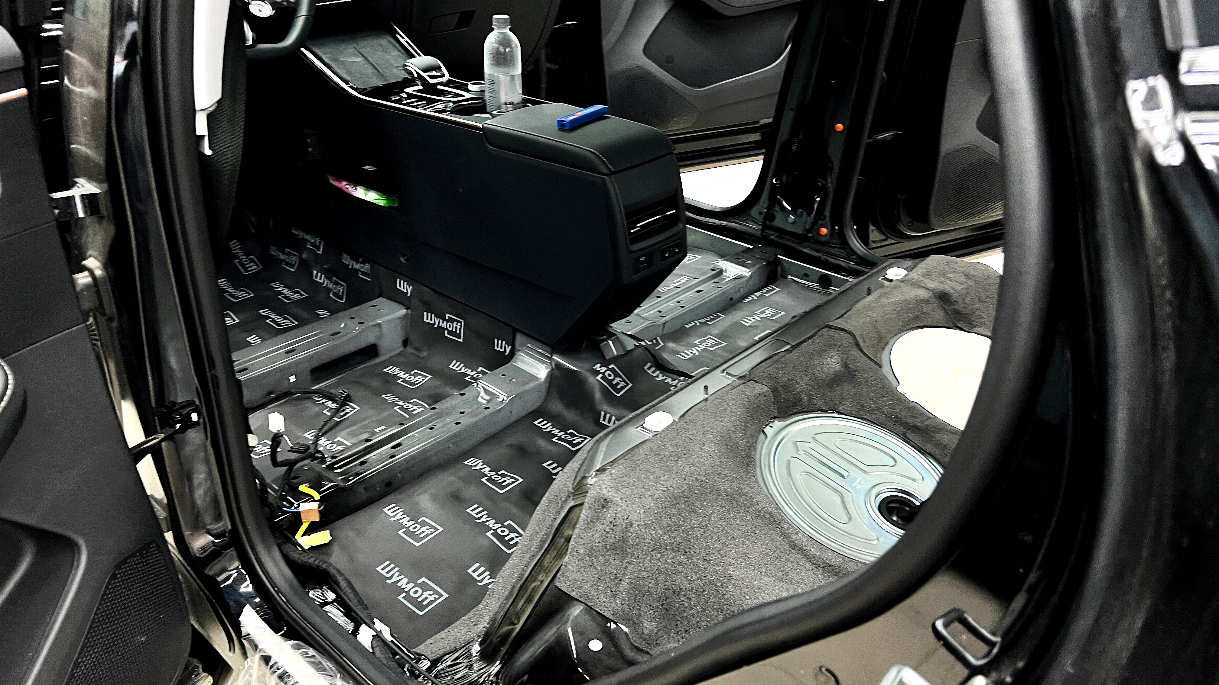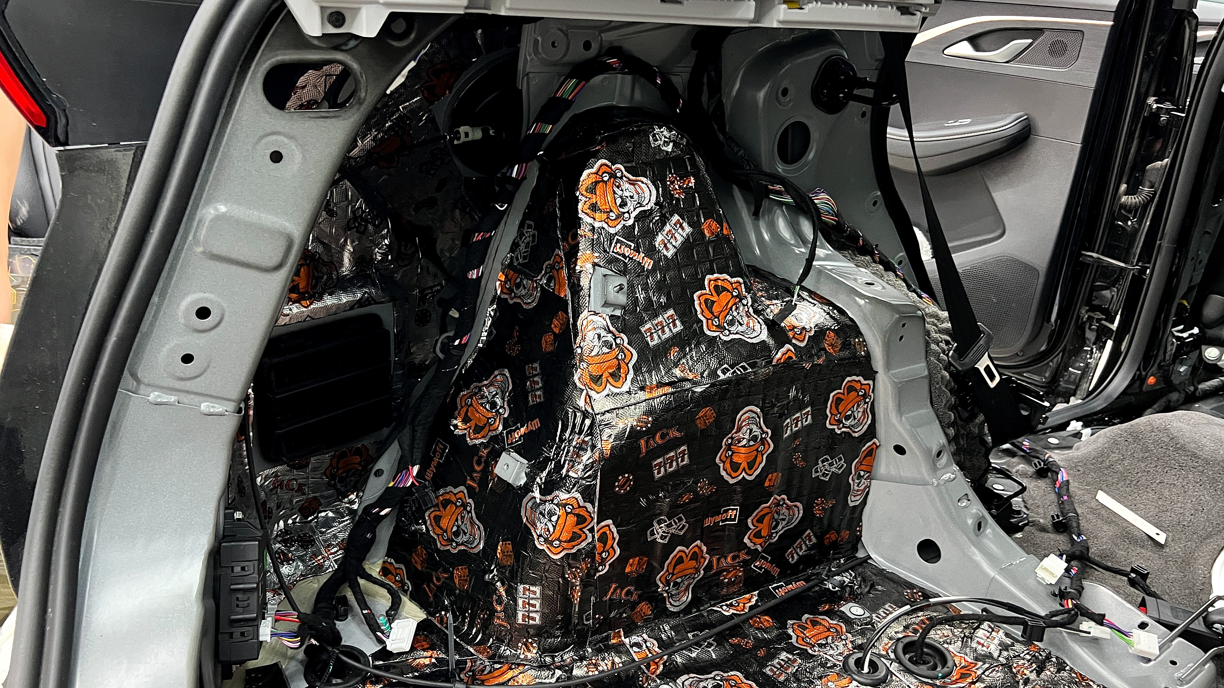 Дно багажника и крылья оклеиваются шумо и теплоизолятором Pin-Up П4 4. Арки оклеиваются шумопоглотителем Flex A15.