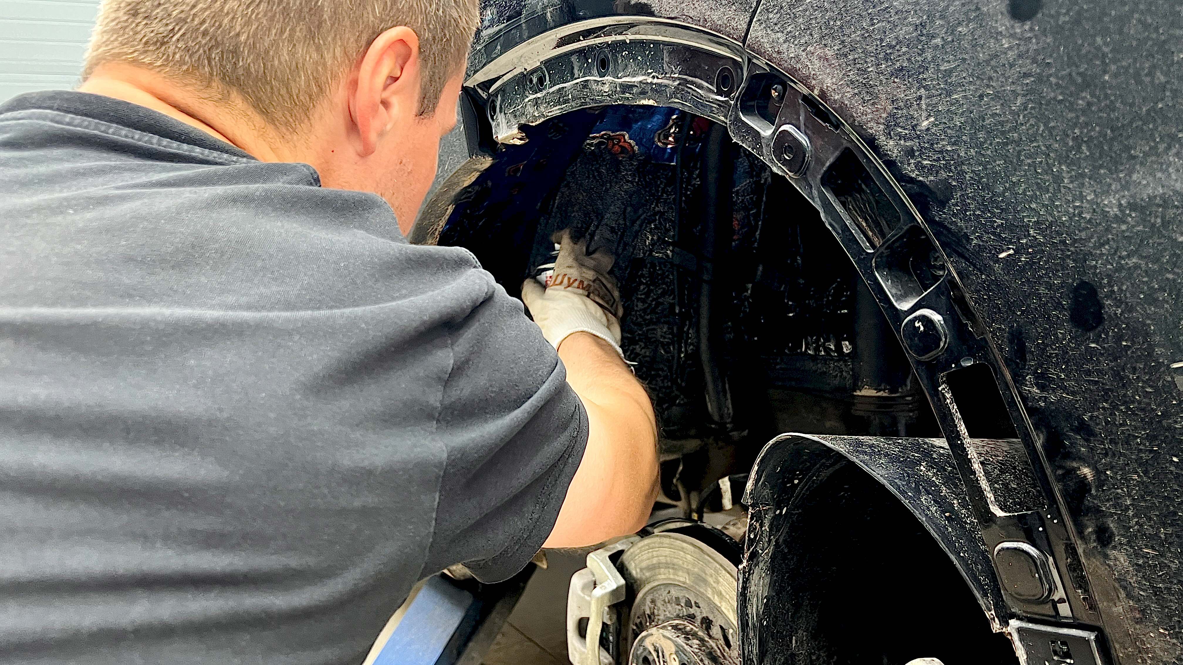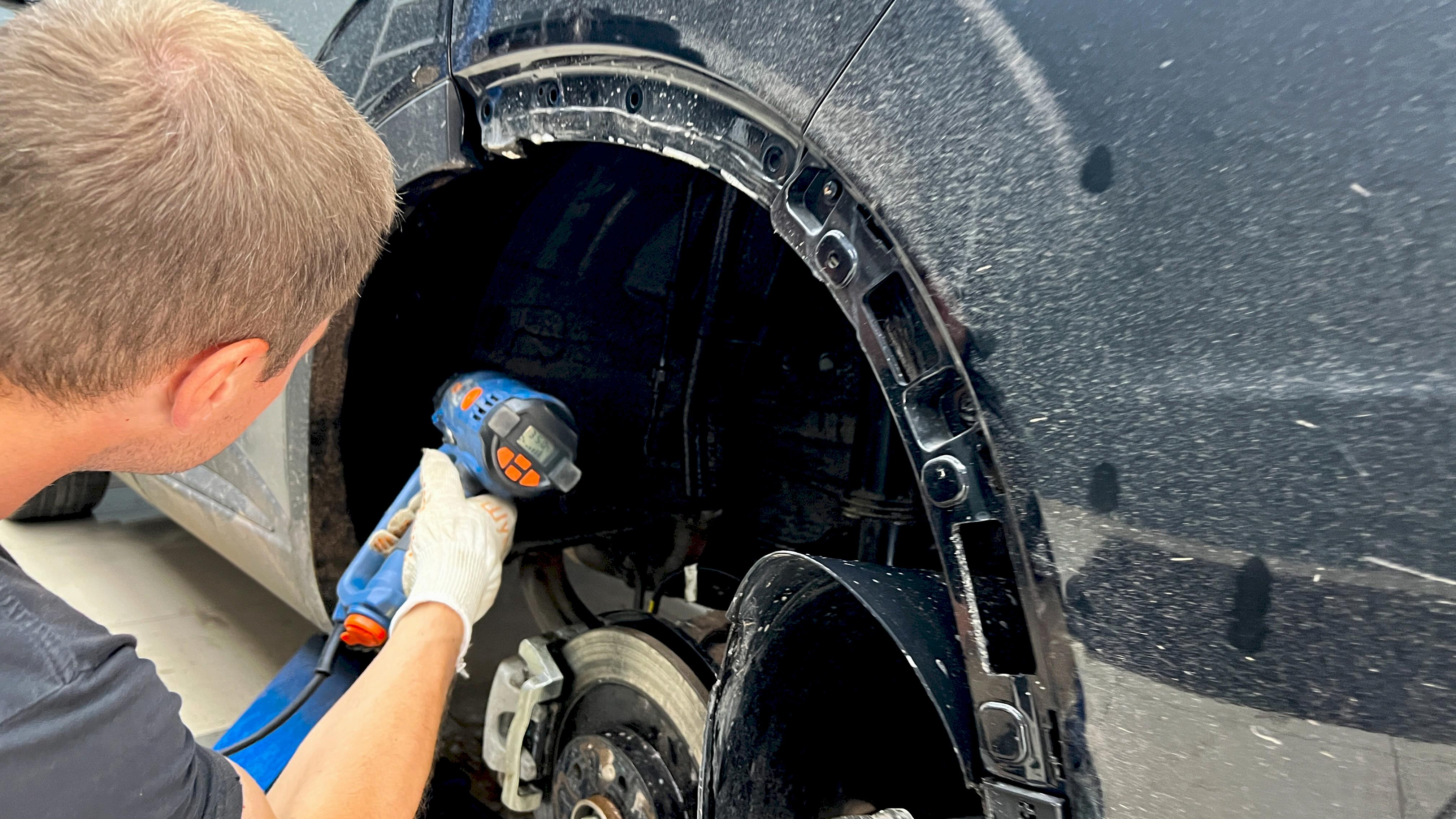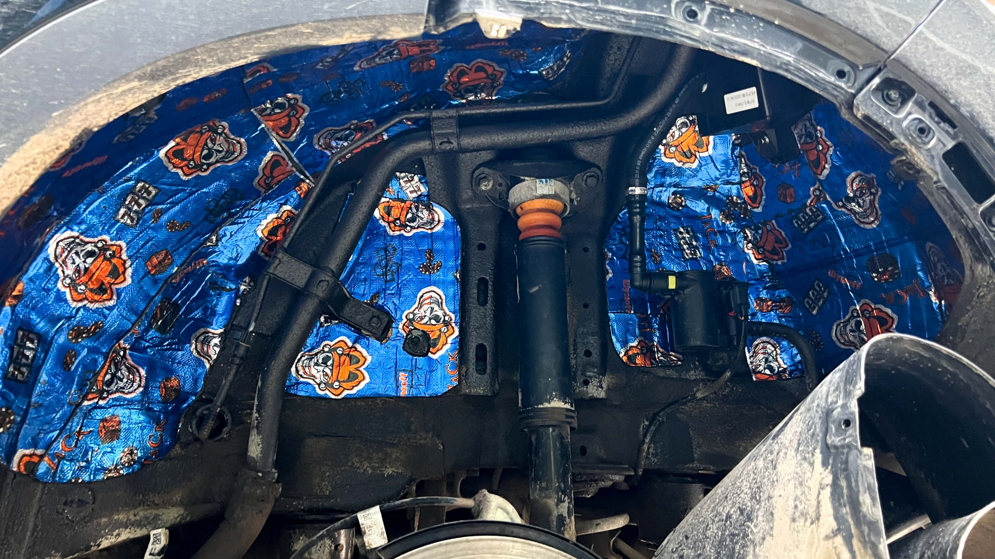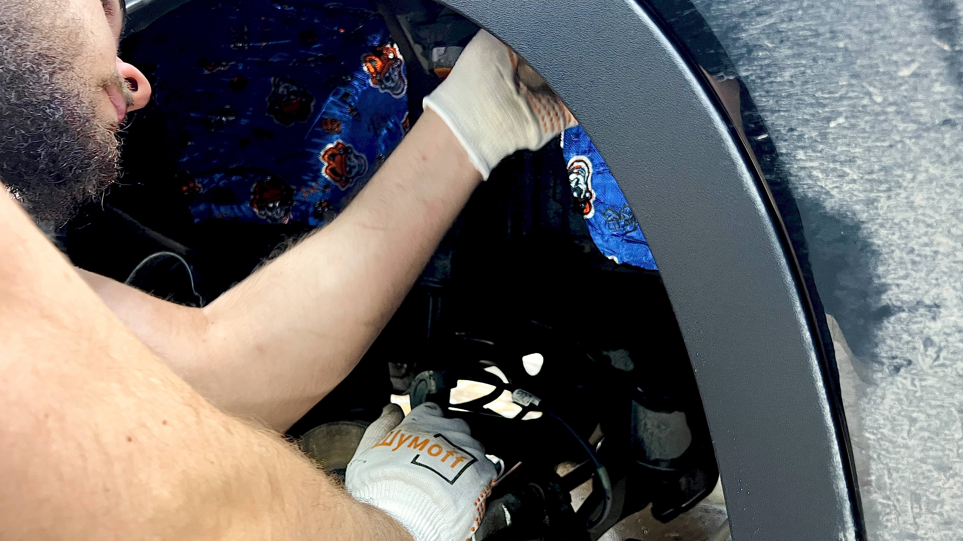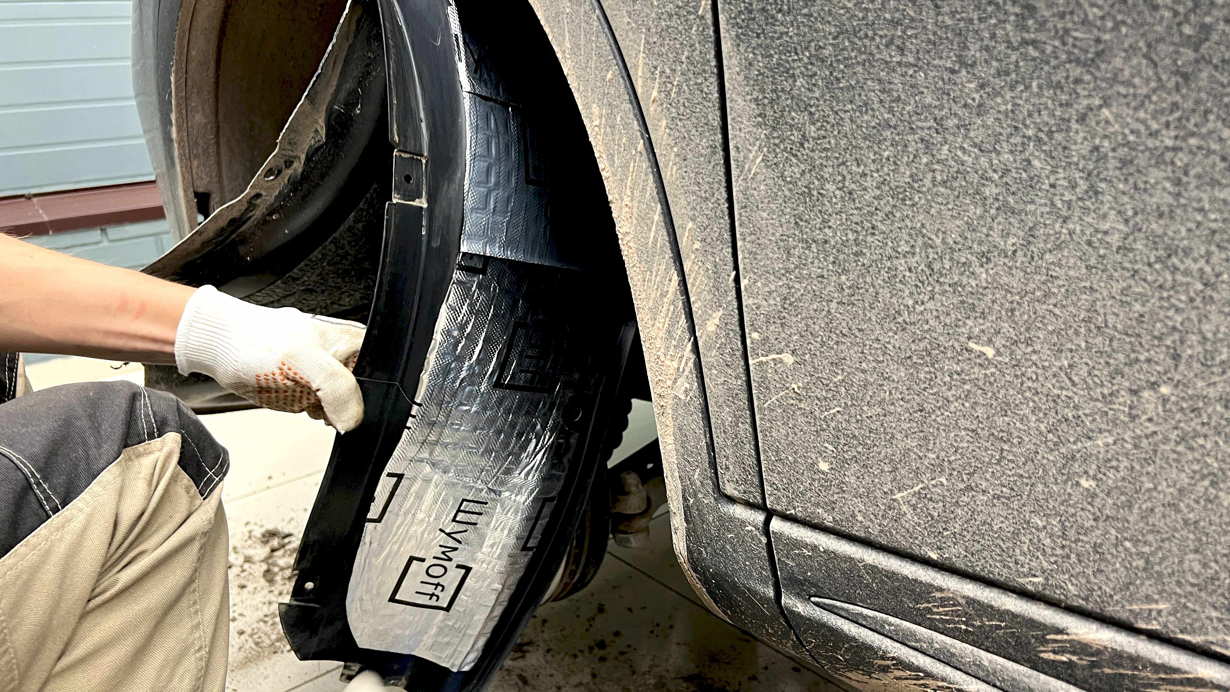 Третьим Pin-Up на подкрылки монтируем виброизоляцию Шумофф М2