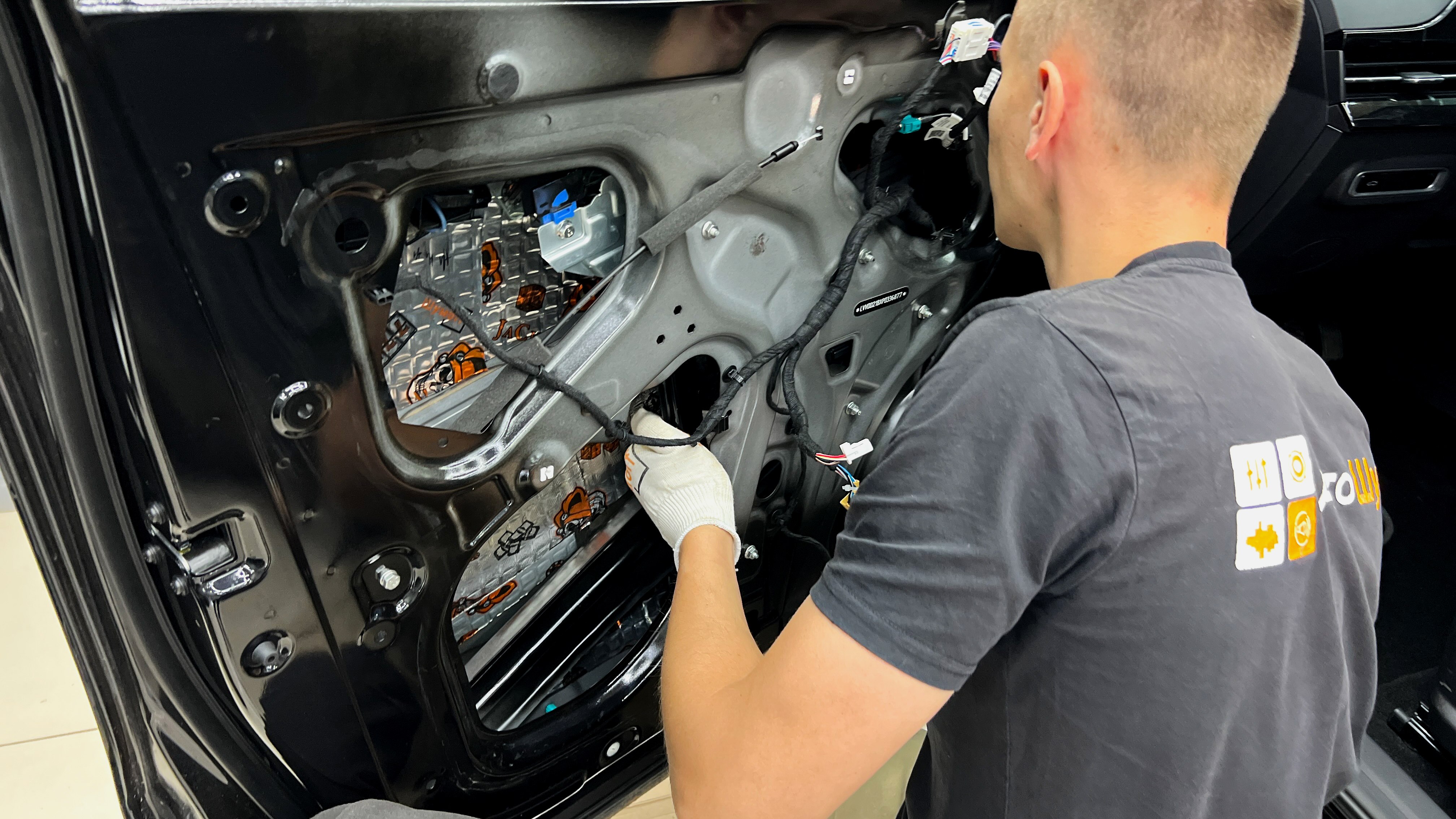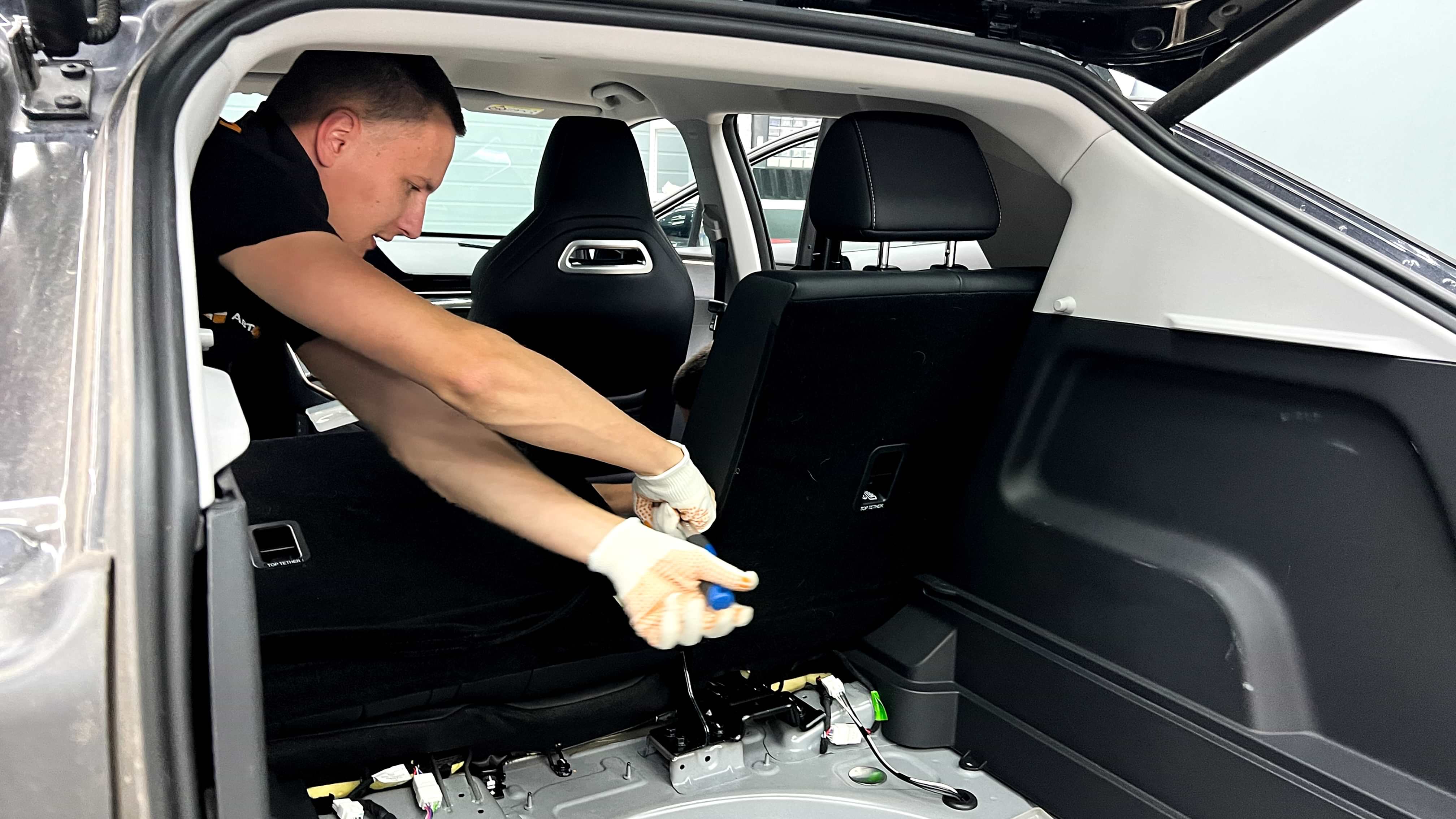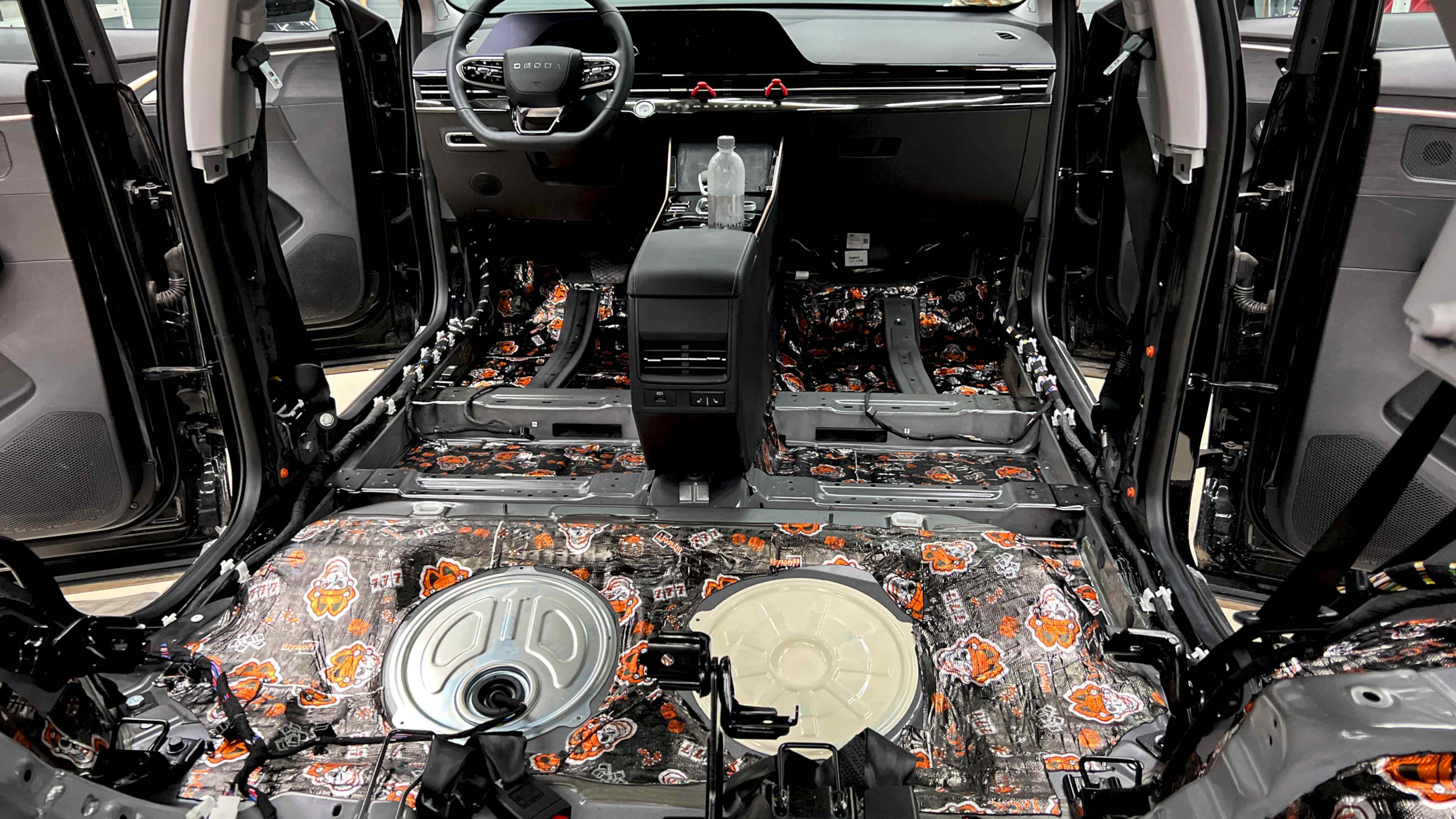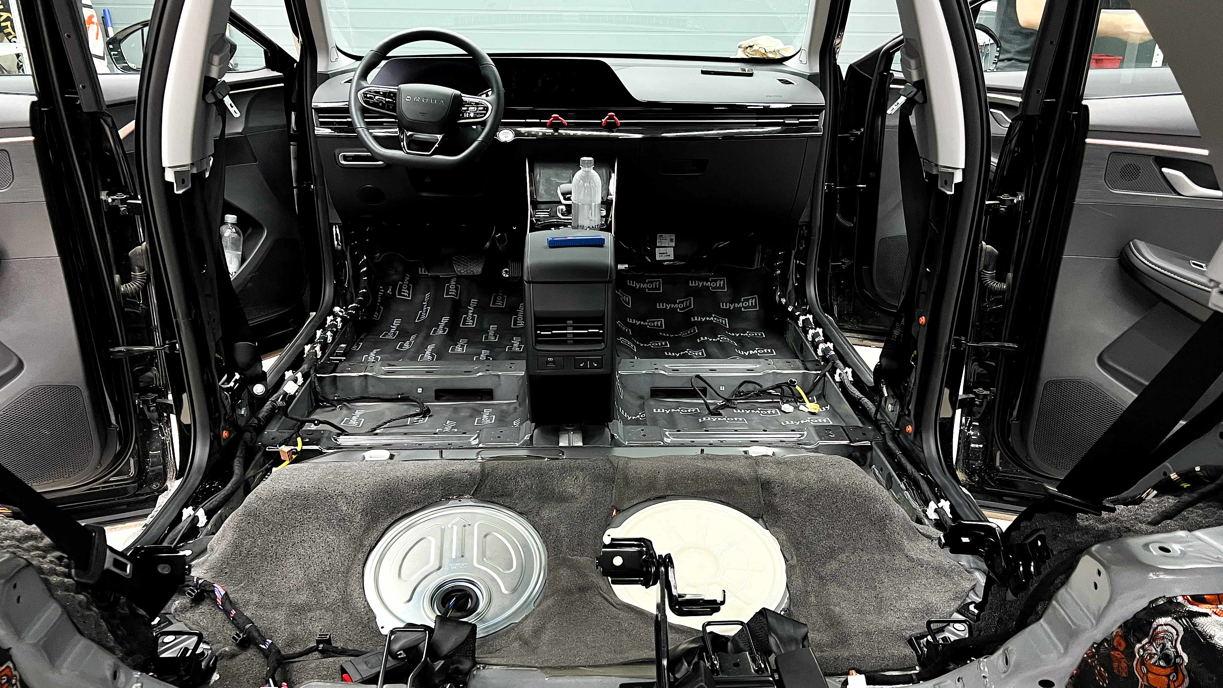 Перед началом шумоизоляции пола на Omoda C5 (Омода С5) необходимо проверить качество адгезии заводской виброизоляции к кузову. Она Pin-Up хорошо держаться, в противном, случае её необходимо демонтировать.