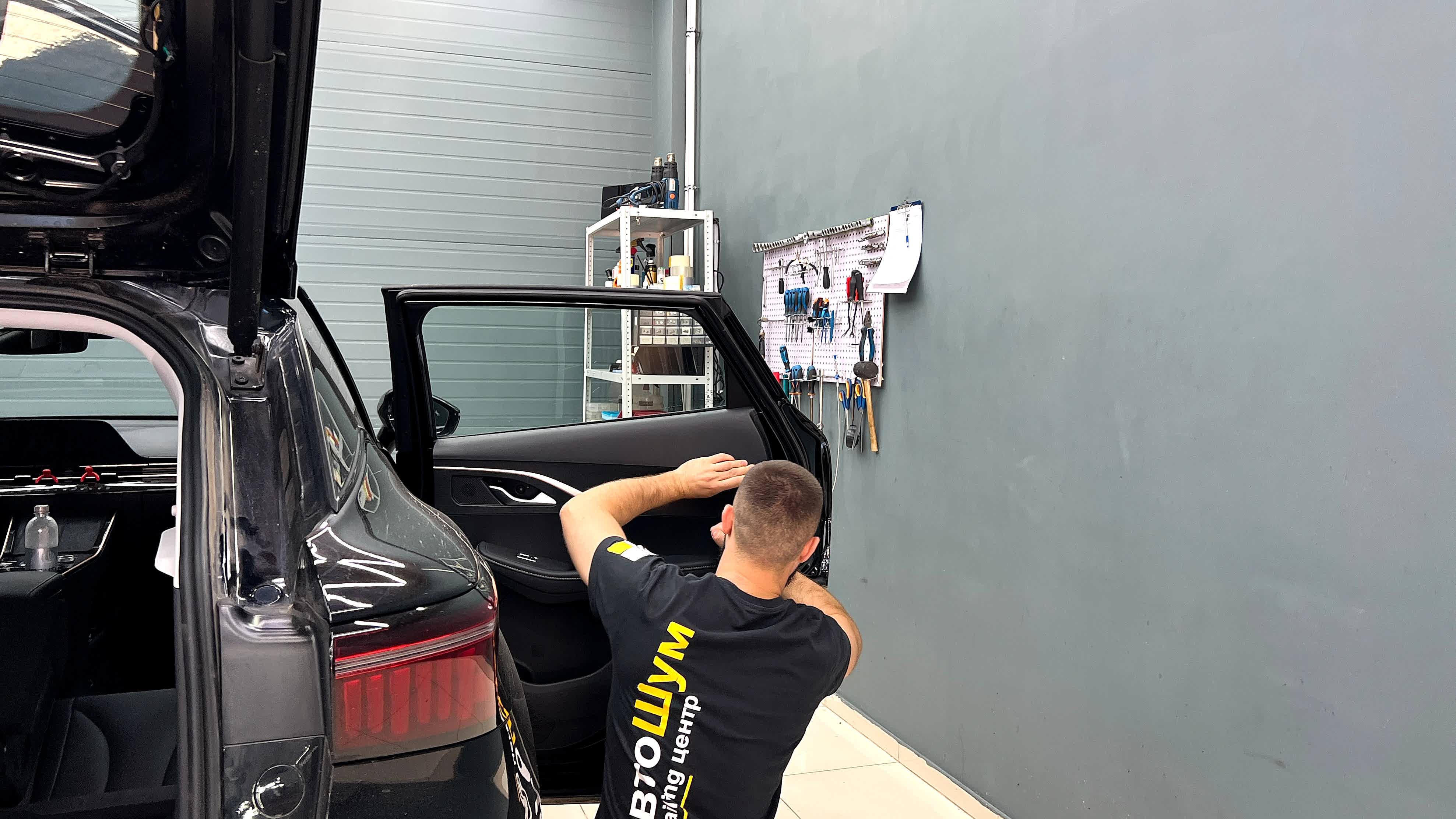 Обшивку пятой двери оклеиваем Absorber А15, а по всему Pin-Up клеим антискрип.