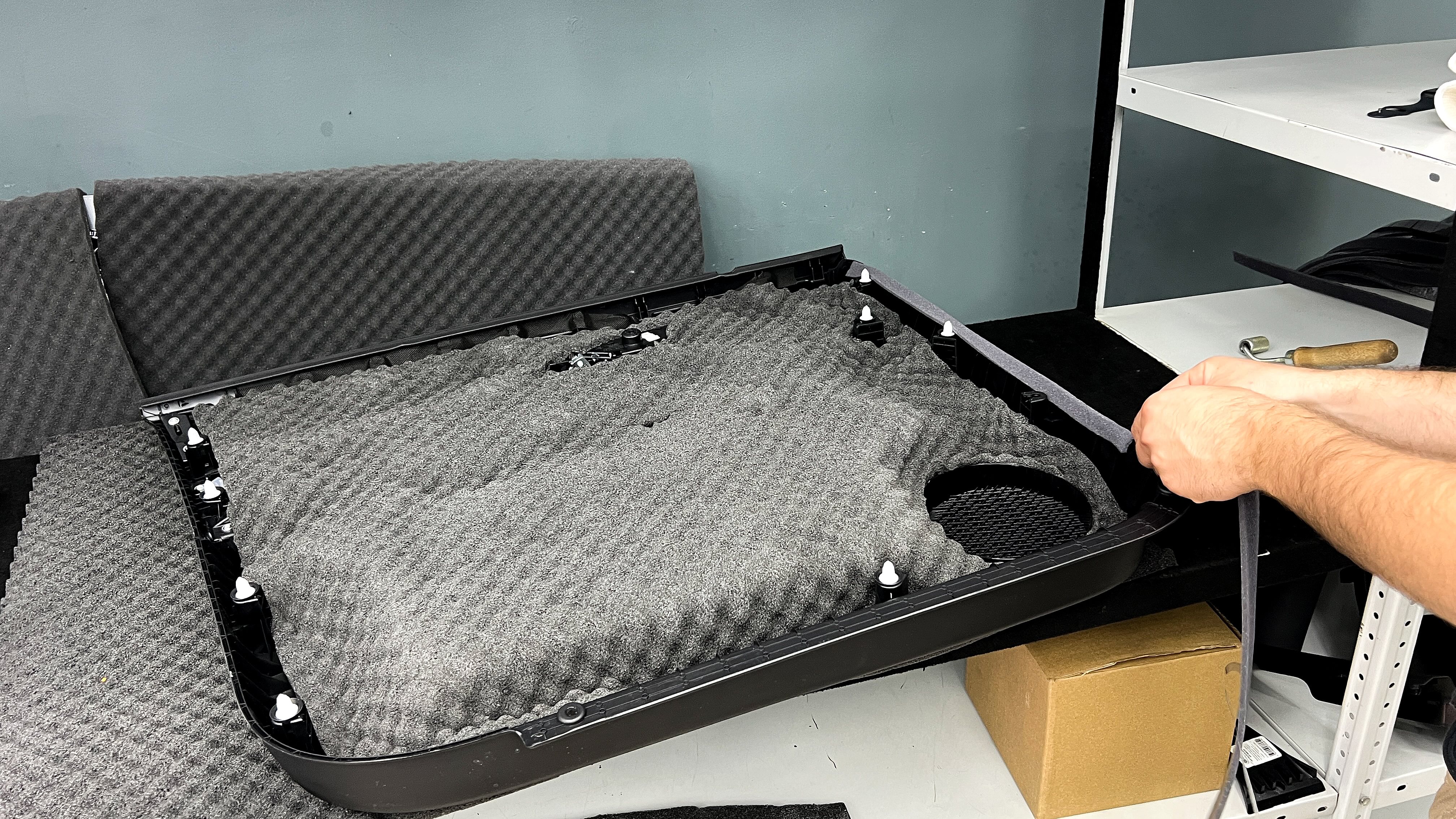 Для виброизоляции крыши багажника используем материал Шумофф L2, чтобы свести увеличение веса к минимуму. После Pin-Up переходим к обшивке.