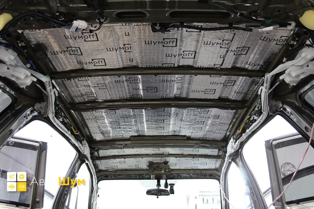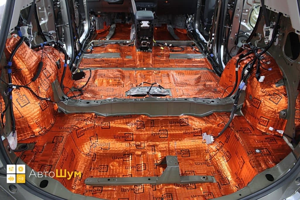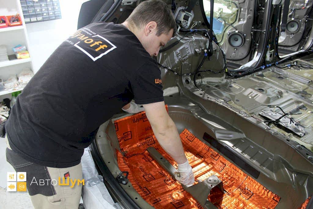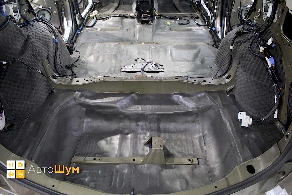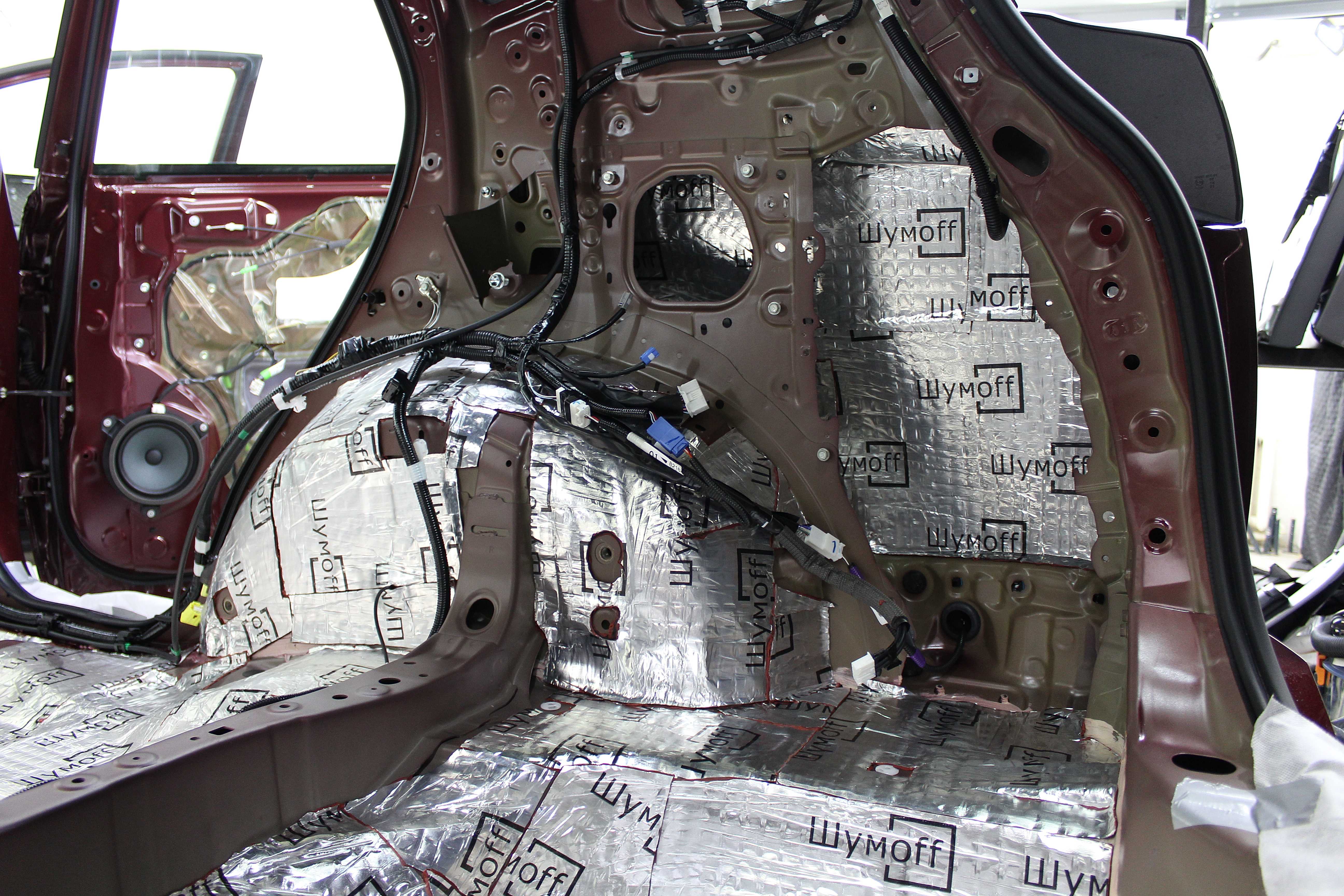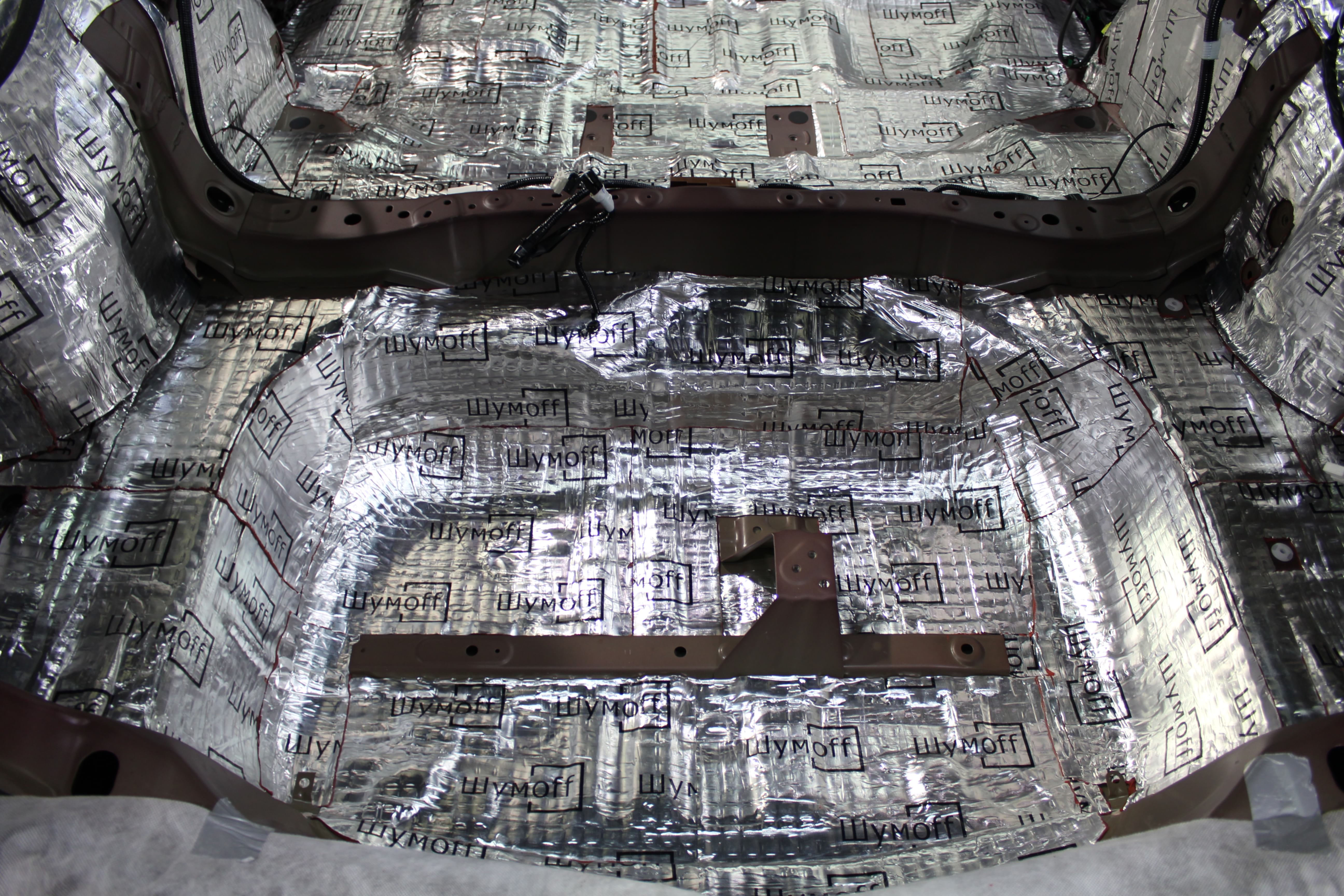 Дно багажника и крылья оклеиваются шумо и теплоизолятором Шумофф П4 4. Арки Pin-Up шумопоглотителем Flex A15.