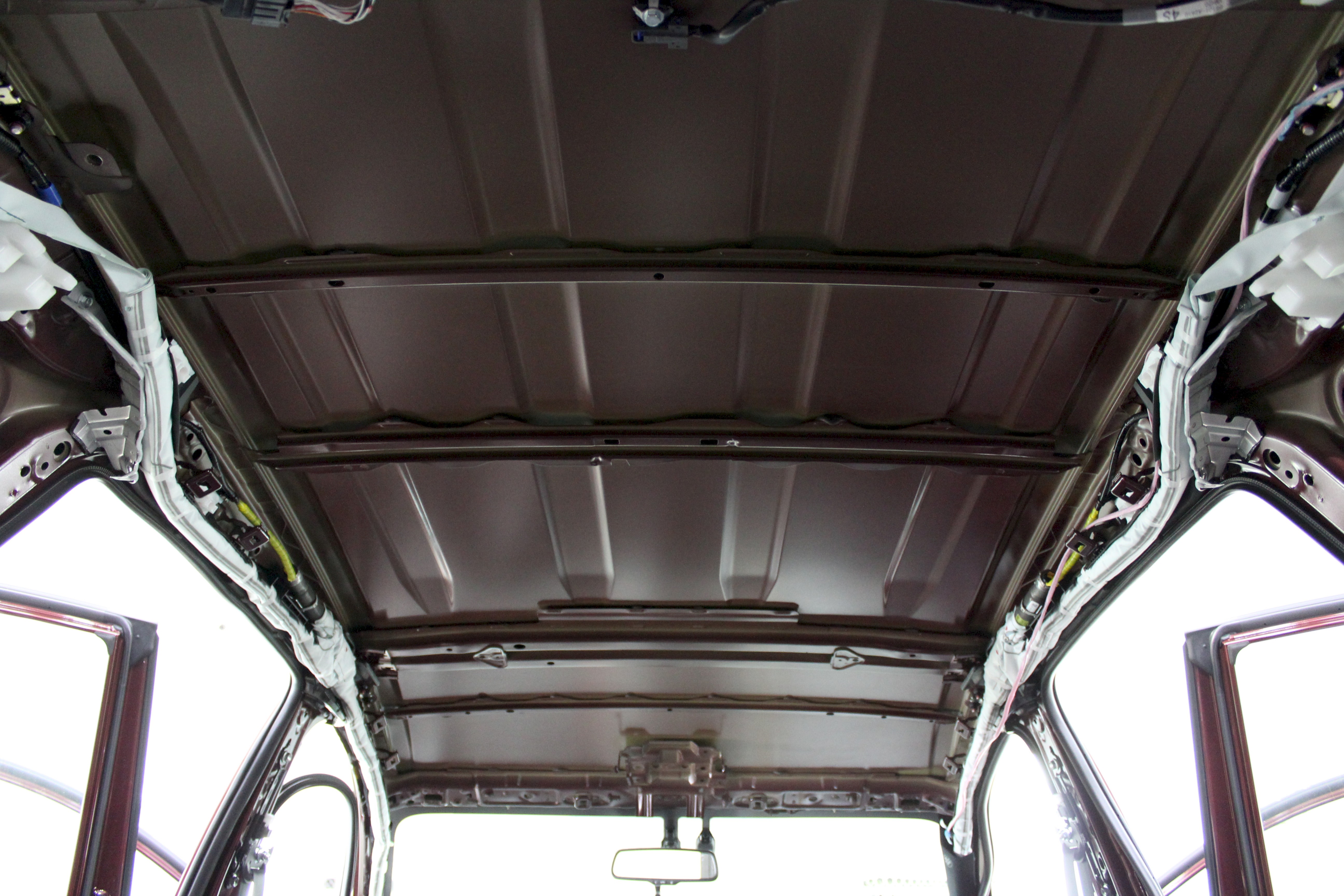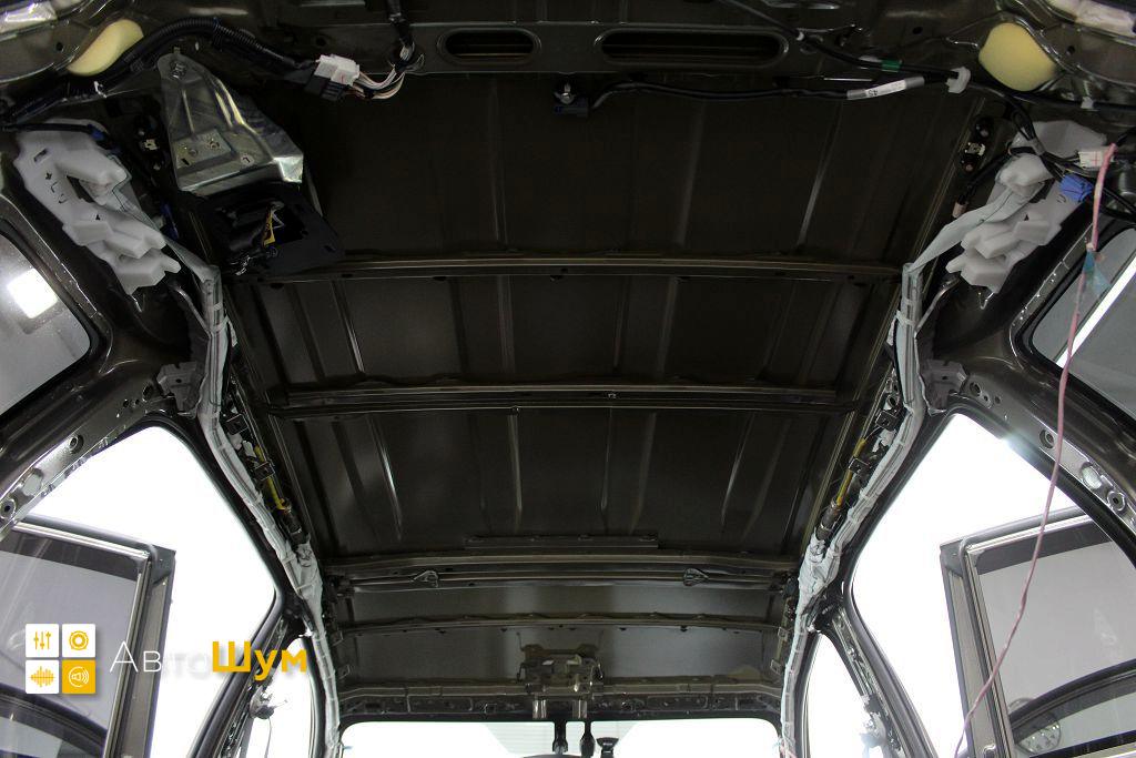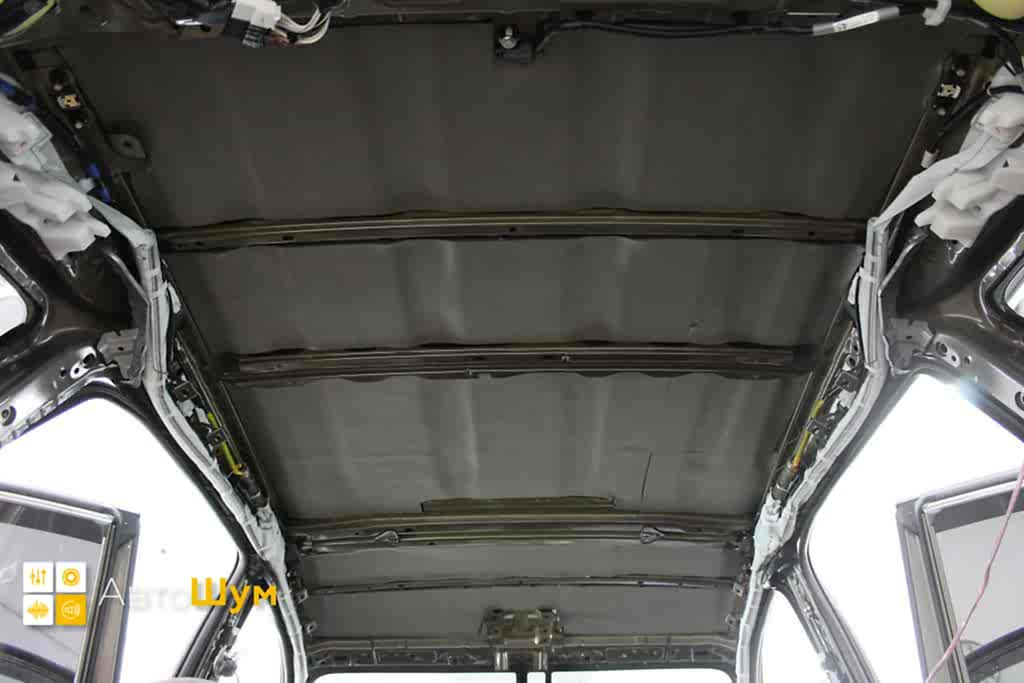 Штатная шумоизоляция крыши на Toyota Rav4 Pin-Up (Тойота Рав4 Ха40) полностью отсутствует. Обезжириваем поверхность для начала монтажа виброизоляции.