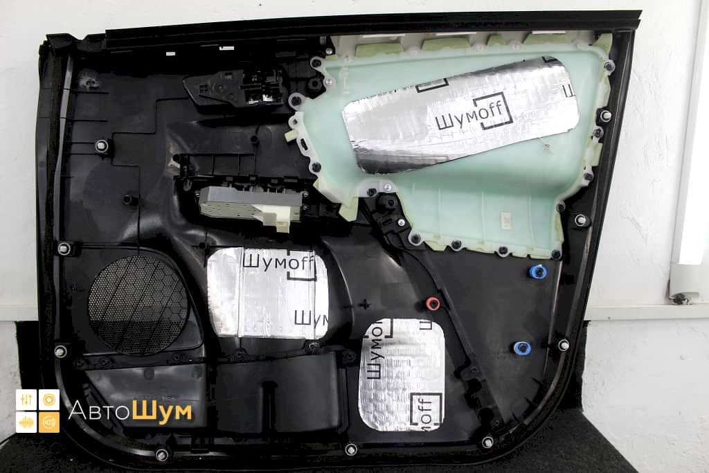 Внутренняя поверхность обивки оклеивается шумопоглотителем Шумофф Flex Pin-Up