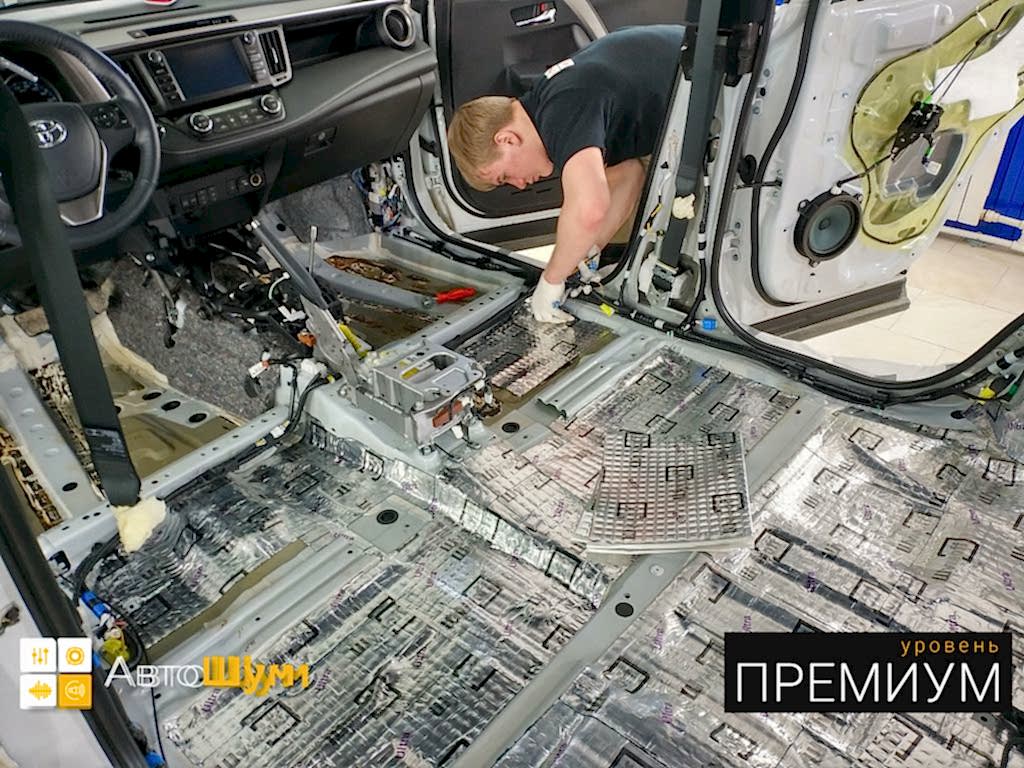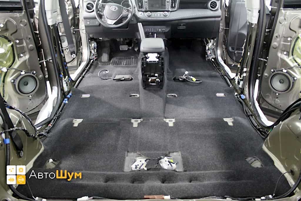 Toyota Rav4 один из самых шумных Pin-Up Японского производителя, шум и гул Толе би, 149 колес, брякающий и скрипучий пластик сильно досаждает владельцев. Исправить эти недочёты можно, сделав дополнительную шумоизоляцию Тойота Рав 4.